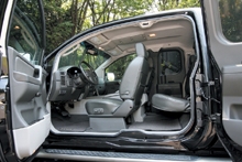 米国製トラックと比較すると、同じプラスチック主体なのだが、俄然質感の高さを感じるインテリア。シフト位置やセンターコンソール位置の高さから、どちらかというとタイトな乗用車的雰囲気を感じる。