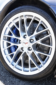フロント394mm/リア380mmの専用クロスドリルドローターは、量産車のカーボンセラミック製ローターとして最大級のサイズを誇る。 ZR-1専用のブルーで彩られたフロント6ピストン/リア4ピストンのキャリパーと組み合わされ、ZR-1の驚異的なパフォーマンスを確実に受けとめる。またフロント19インチ/リア20インチの20スポークアルミホイールを装着。