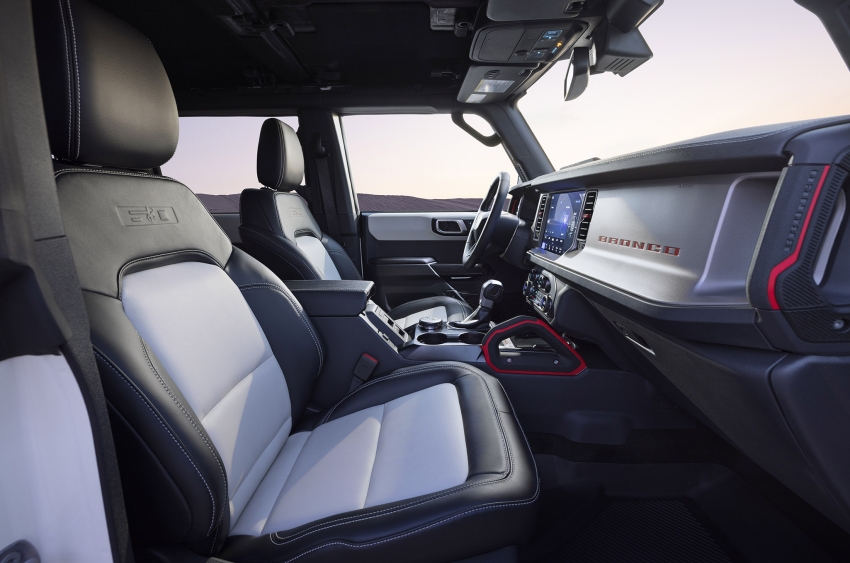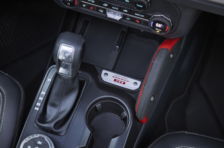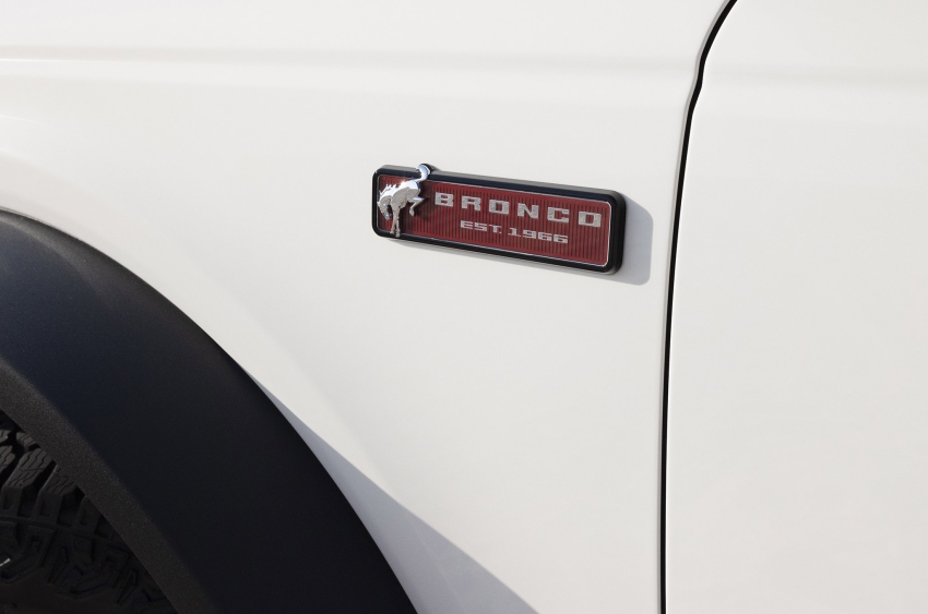 ホイールのセンターキャップはバーミリオンレッドのコントラストカラーで、中央にはブロンコロゴ、外側のリングには初代ブロンコのモデルイヤーである「1966」が刻印されている。