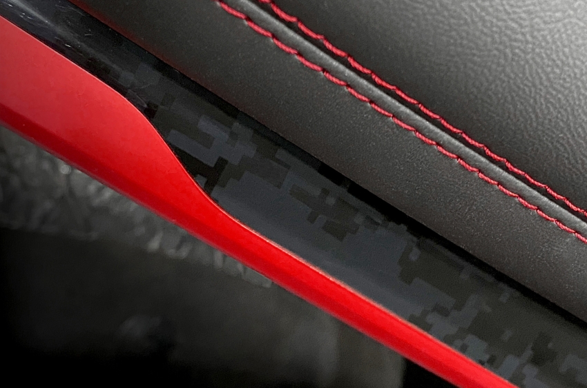一方インテリアにもレッドとブラックの配色を取り入れ、レッドのトリム、そしてトレイルエディション専用のブラックカモフラージュ柄プリントが施されている。