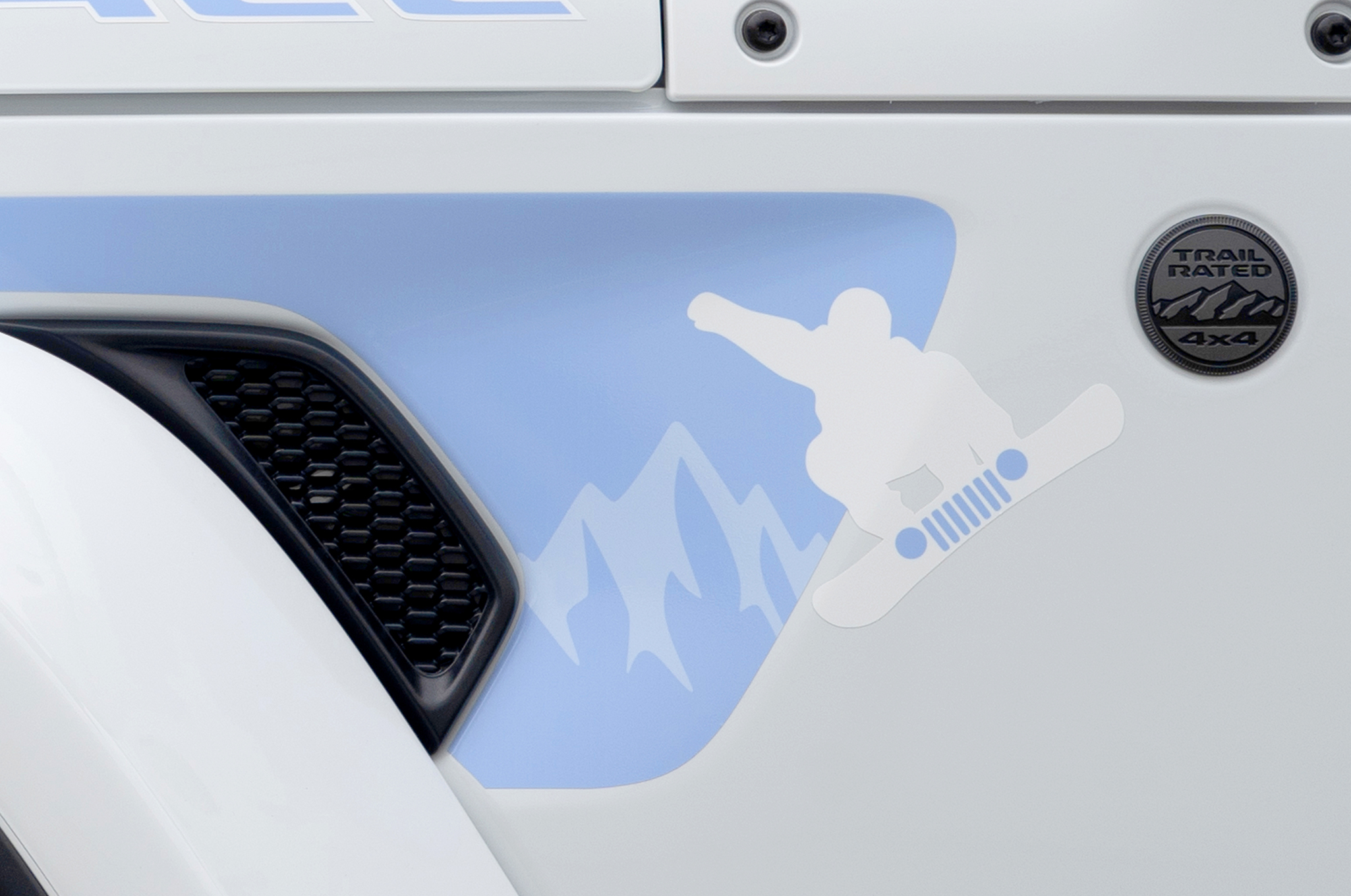 スノーアクティビティからインスピレーションを得たデザインが魅力で、ボンネットにはスキーとスノーボードをモチーフにした大きなデカールを採用。サイドフェンダーにはスキーヤーとスノーボーダーが疾走するシルエットを描いている。