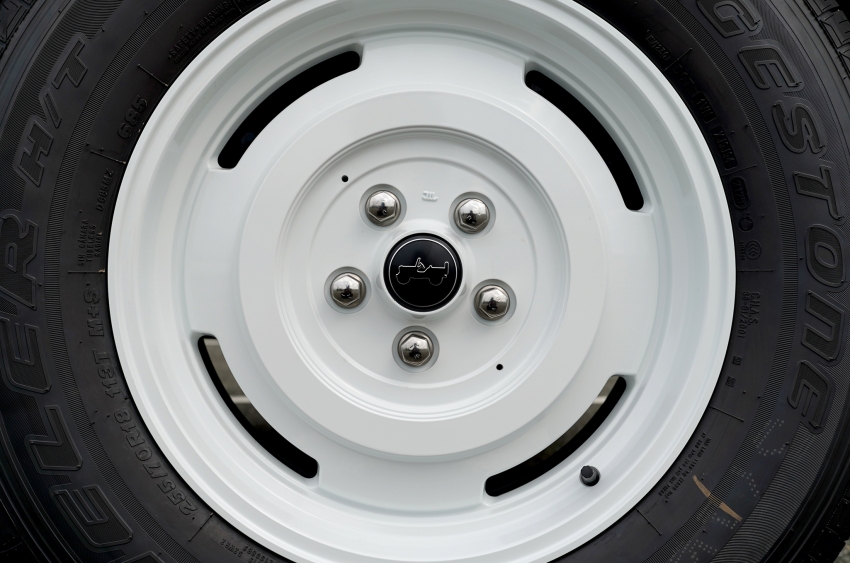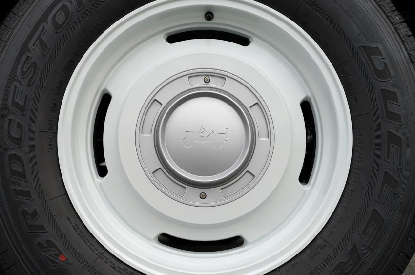 ホイールデザインのひとつは、Willys MBのスピリットを受け継ぐコンセプトカー「Willys ’41(ウィリス フォーティーワン)」から着想を得たクラシカルな佇まい。一方、シルバーの大型キャップを装着すれば力強い存在感を放つ。いずれのセンターキャップにも、Willys MBのシルエットが刻印されている。