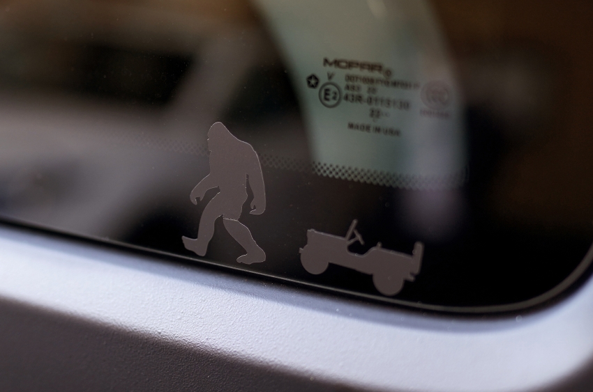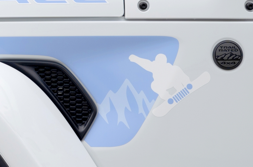 これらデカールは、米国のプロダクトデザインチームと共同で制作されている。また左リアガラスには、ジープの原点ともいえるWillys MB(ウィリス エムビー)と雪男が並んで歩くシルエットを施すなどのディテールも加えている。