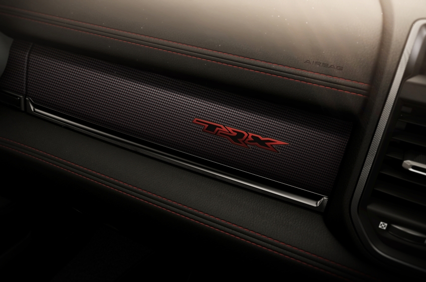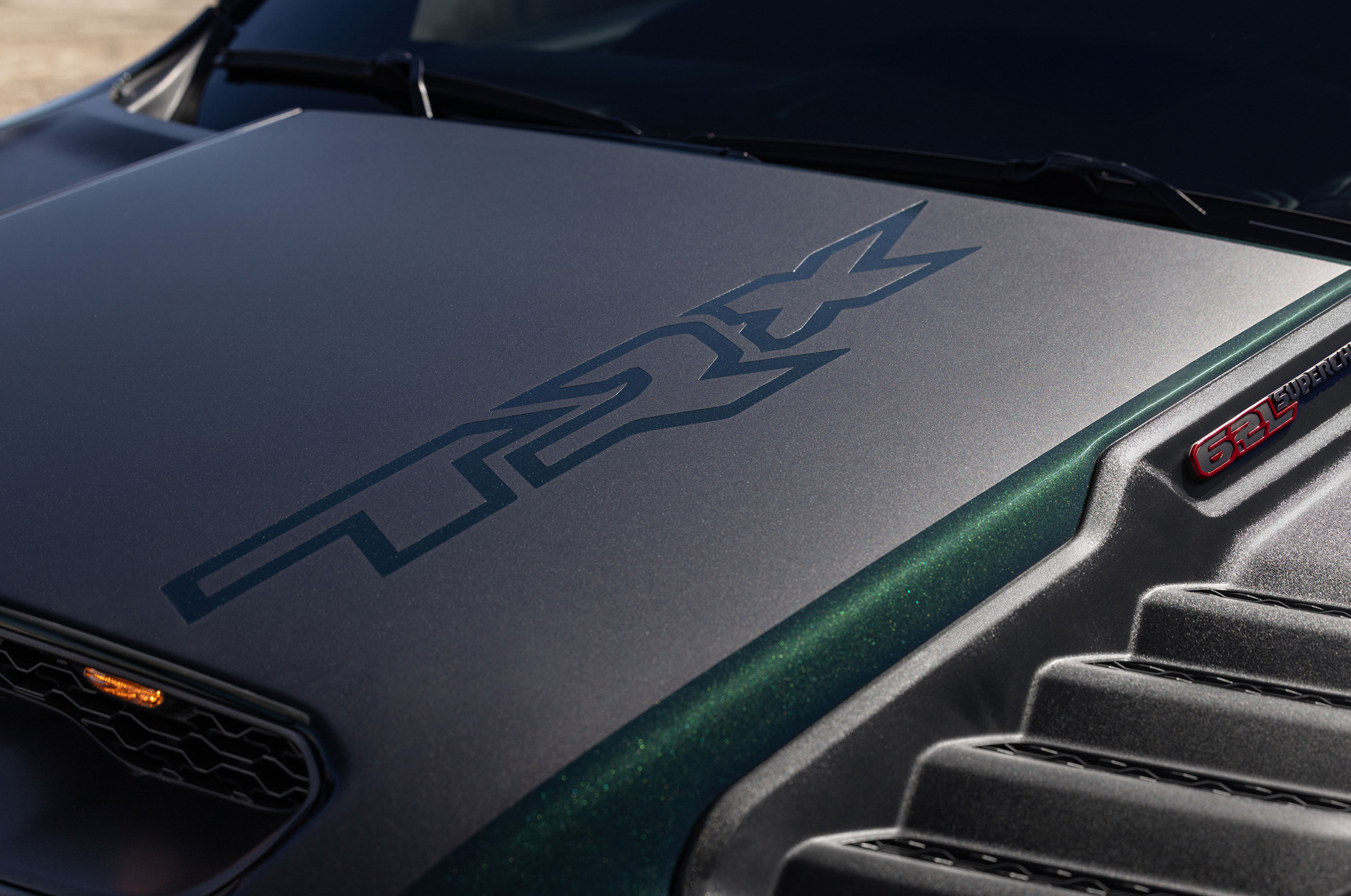こうしたTRXの復活を記念した「Bloodshot Night Edition」が同時に発表されている。専用のブラックトップアッパーペイント、フレイムレッド塗装のセンターフードストライプ、特徴的なスプラッシュグラフィック、赤いディテールのカーボンファイバーインテリアトリム、ガラスケースのセンターコンソールバッジ、赤いアウトラインのTRXバッジが採用されている。