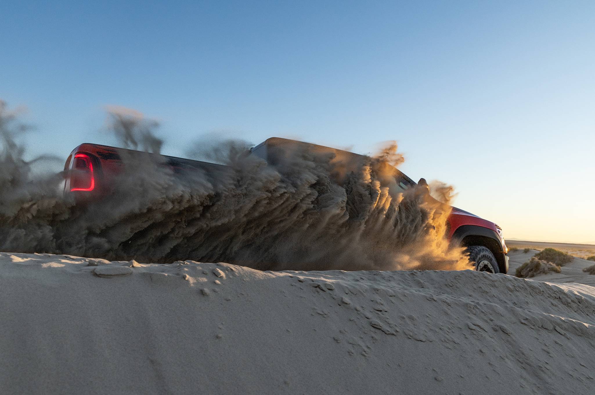 新型のラムTRXは第二世代のTRXであり、旧時代から大幅に進化している。搭載エンジンは6.2リッターV8スーパーチャージャーだが、777hp、最大トルク680lb-ftを発生させ、0~60mphを3.5秒で加速し、最高速度118mph(190キロ)を実現する。