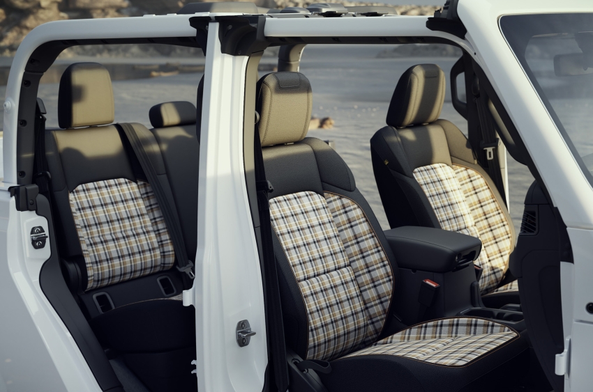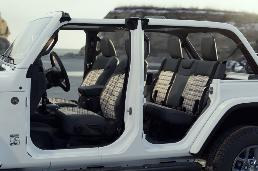 ラングラー85thアニバーサリーは、85年間機能優先の設計による不朽の精神を反映し、過去を讃えるディティールを現代のラングラーに落とし込んだモデル。とくにチェック柄にスポットライトを当て、何世代にも渡る伝統、アウトドアの自由、クラシックなスタイルを現代モデルに反映させている。