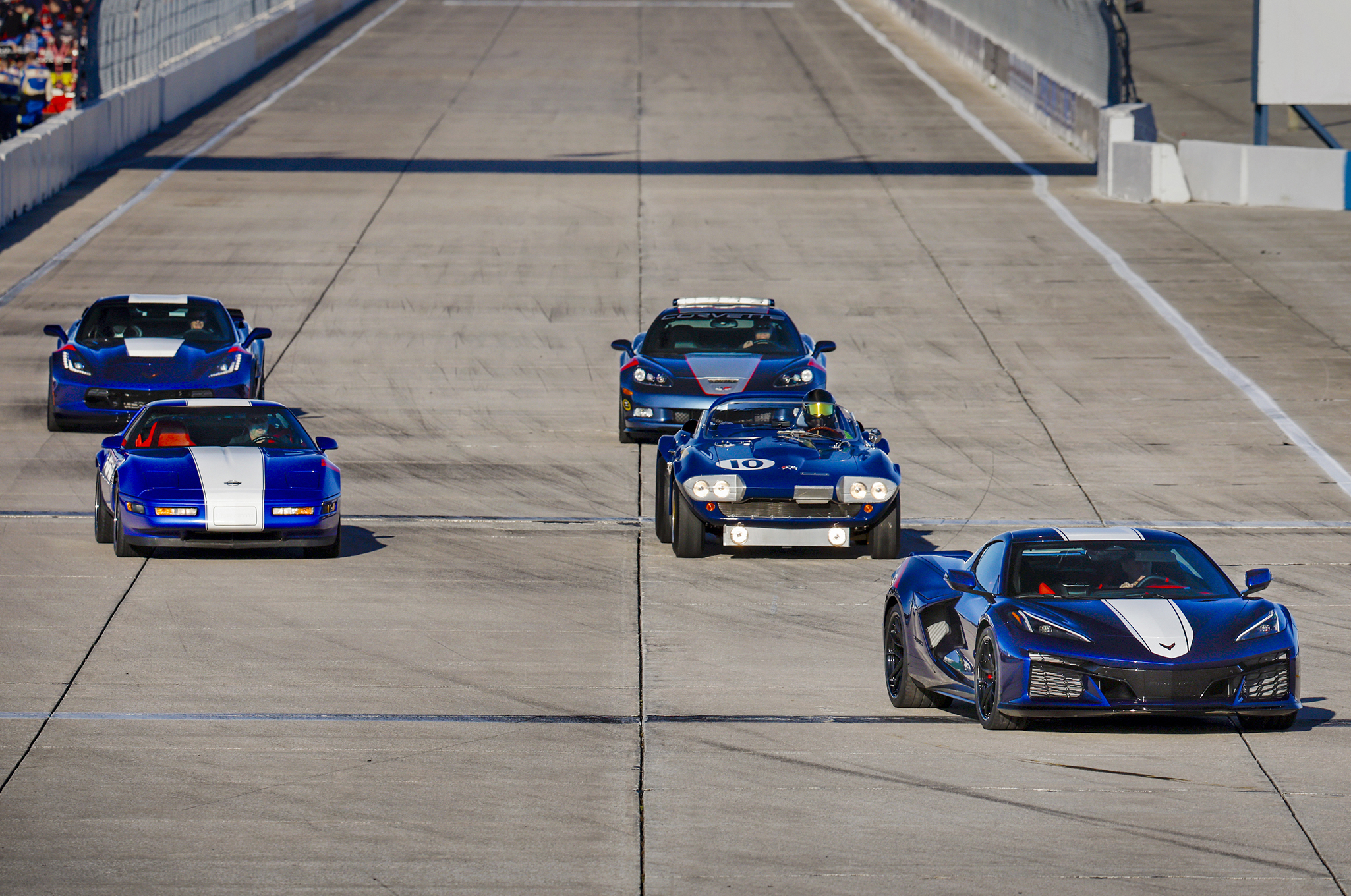C4グランドスポーツは、自然吸気5.7リッターLT4スモールブロックV8エンジンのよりパワフルなバージョンとZR1のシャシーアップグレードを組み合わせた、1年間限定のスペシャルモデル。わずか1000台が生産され、いずれもアドミラルブルーの伝統的なカラーリングに、車体全長にわたる白いストライプと、運転席側フェンダーにトーチレッドのハッシュマークが施されていた。