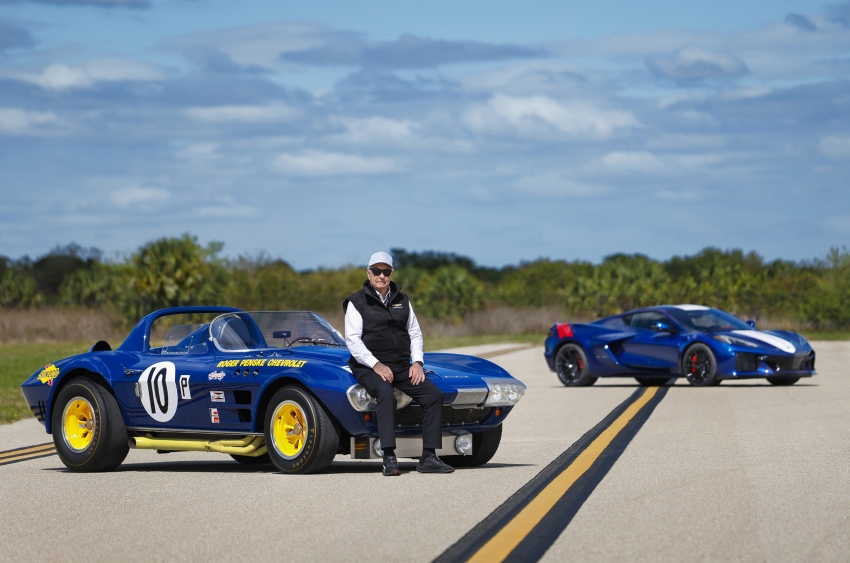▲1964年、セブリングで開催されたレースでクラス優勝を果たした、ロジャー・ペンスキーとジム・ホールの4番コルベット・グランドスポーツ。
