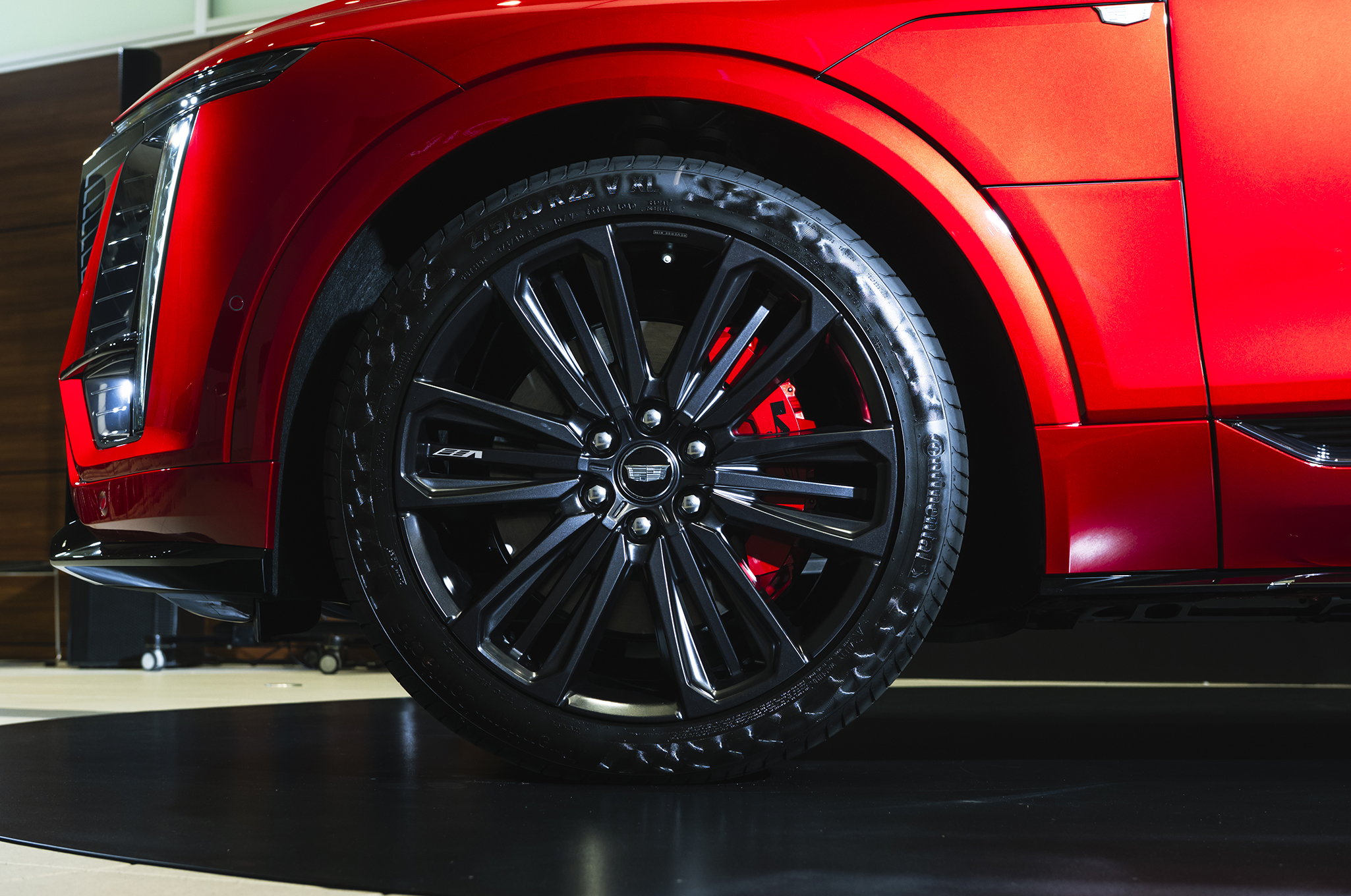 ▲ローダウンに22インチの大径ホイール、そしてブレンボの6ピストンキャリパーを装着し、ハードな走行にも対応する。