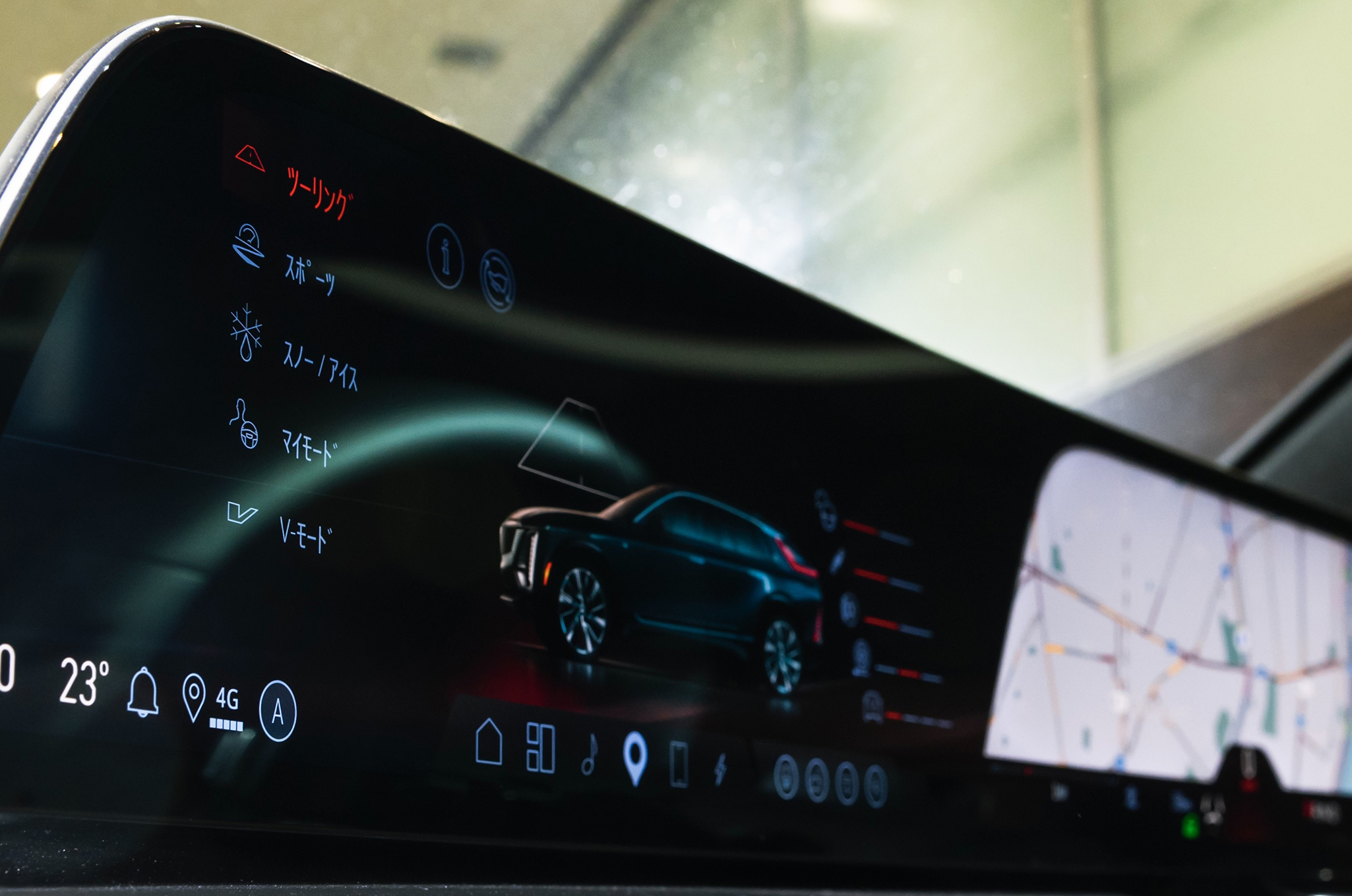 一方、インテリアは、ラグジュアリーな「リリック」の洗練された室内空間を受け継いでいる。また対角33インチを誇る大型LEDディスプレイは、Vシリーズ専用の構成画面を備え、必要な情報を瞬時にドライバーに伝えてくれる。