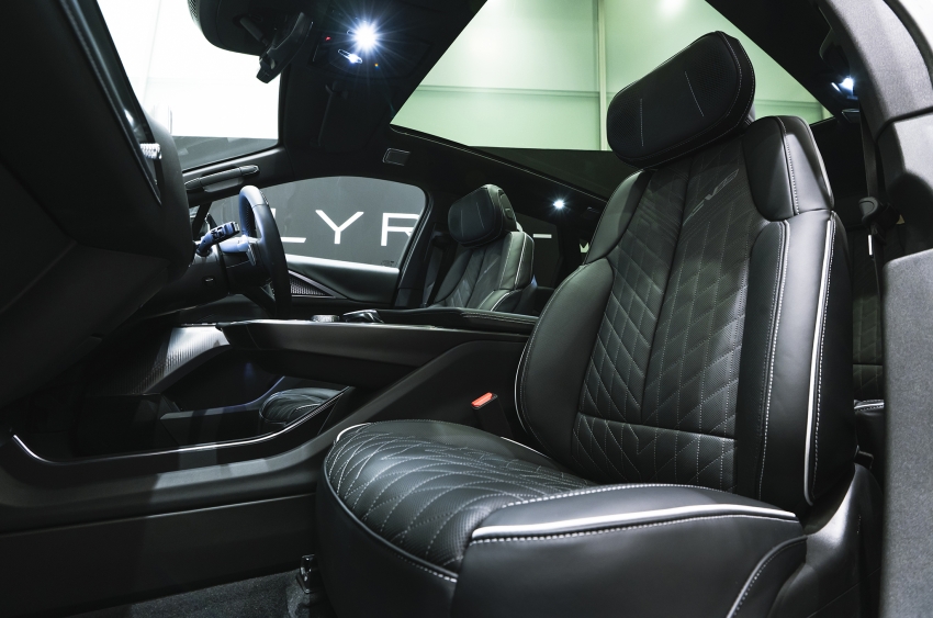 ステアリングホイール中央のVバッジ、ステアリングアームに赤く輝くVモードボタン、レーザーアブレーション加工が施されたステアリング下部の装飾やアルミニウム製のパドルなど、細部にわたる演出は「リリック V」が特別なモデルであることを示している。