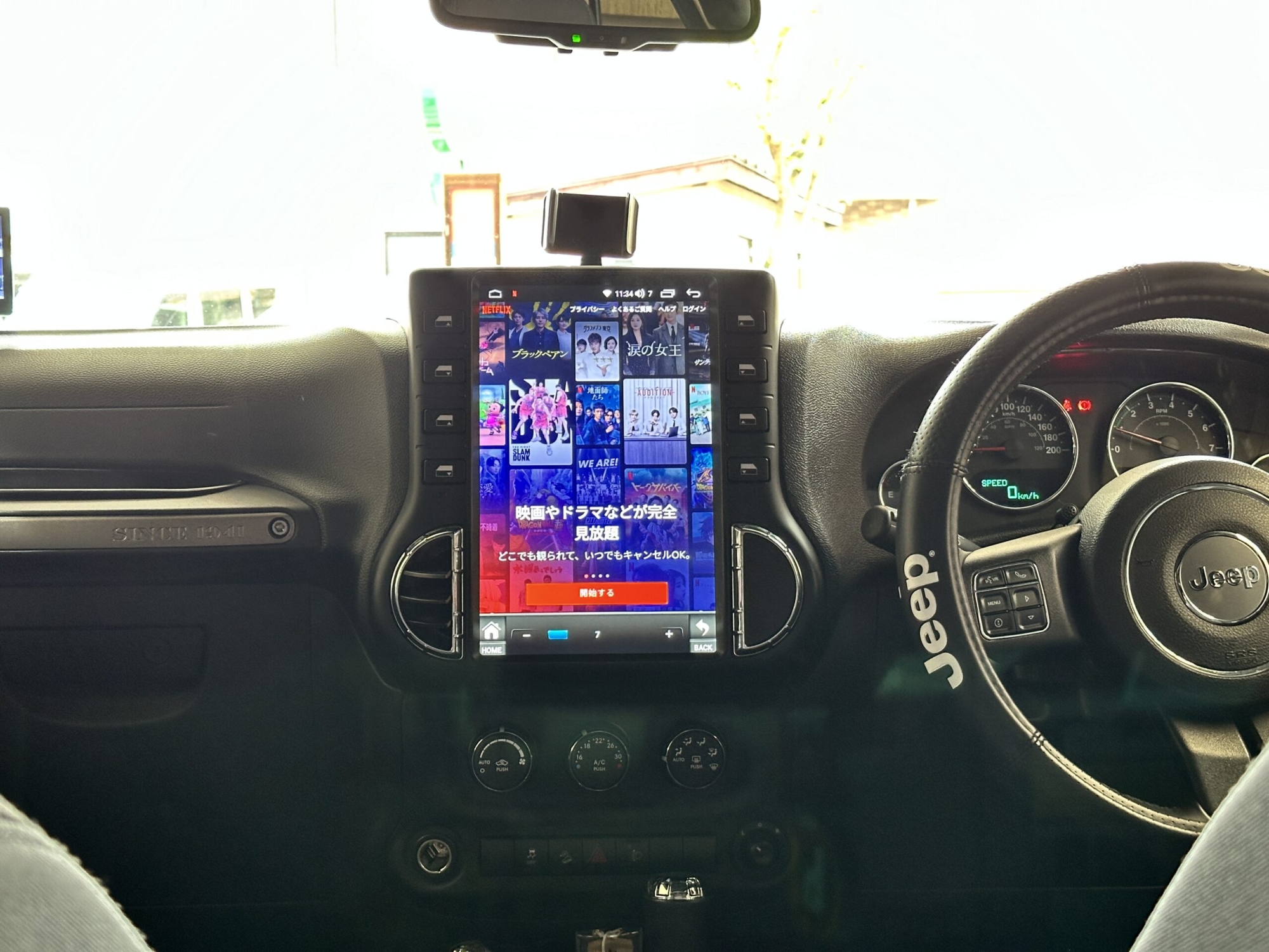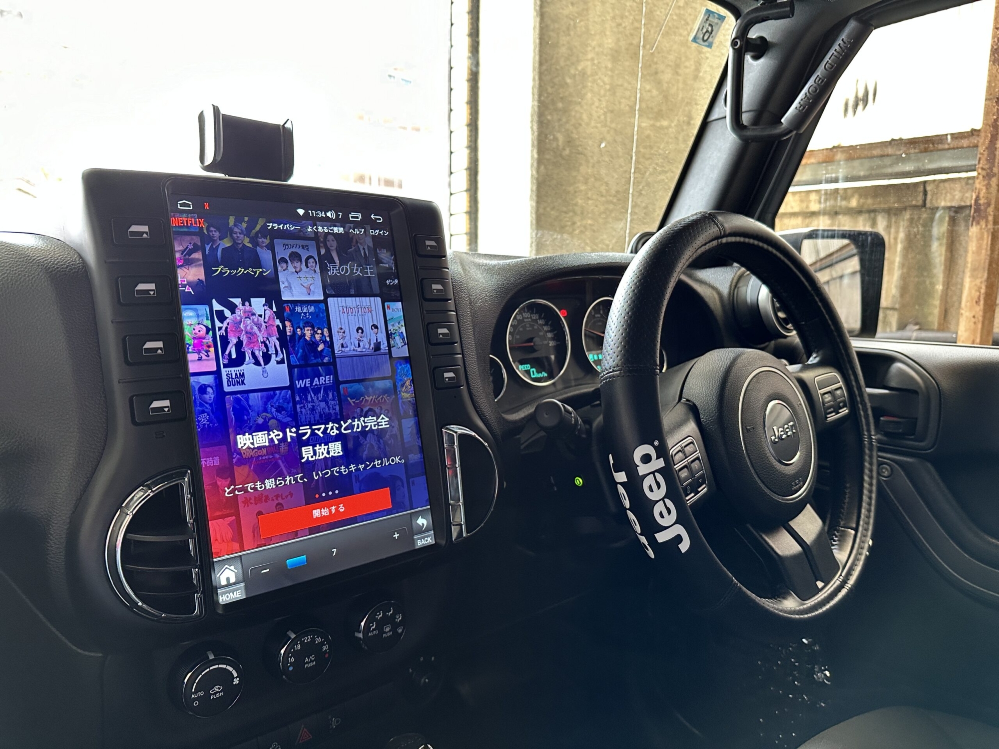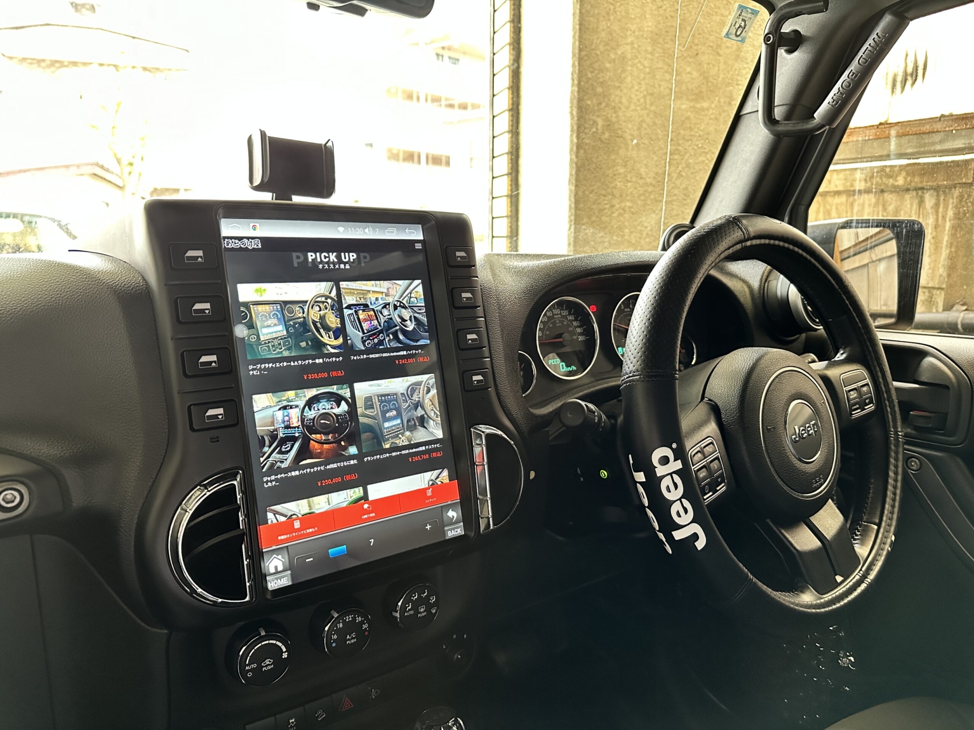 縦型 ラングラーJK 2007〜2017専用のAndroidナビへの交換で、大画面タッチパネル・CarPlay・Google Maps・Bluetooth通話に対応。