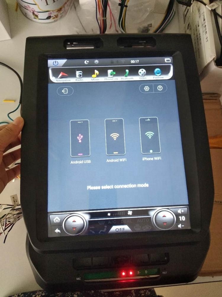 F-150 2014y専用のAndroidナビへの交換で、大画面タッチパネル・CarPlay・Google Maps・Bluetooth通話に対応。