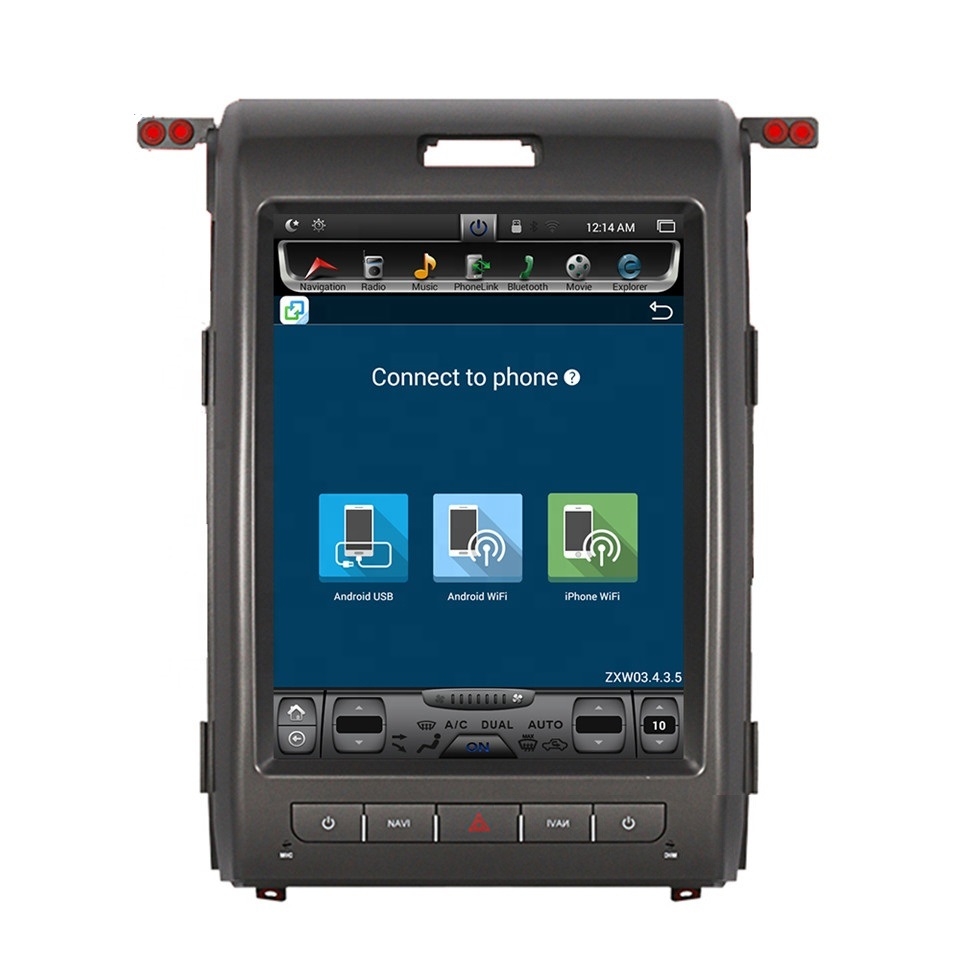 フォードF150 2009-2013y:専用のAndroidナビへの交換で、大画面タッチパネル・CarPlay・Google Maps・Bluetooth通話に対応。