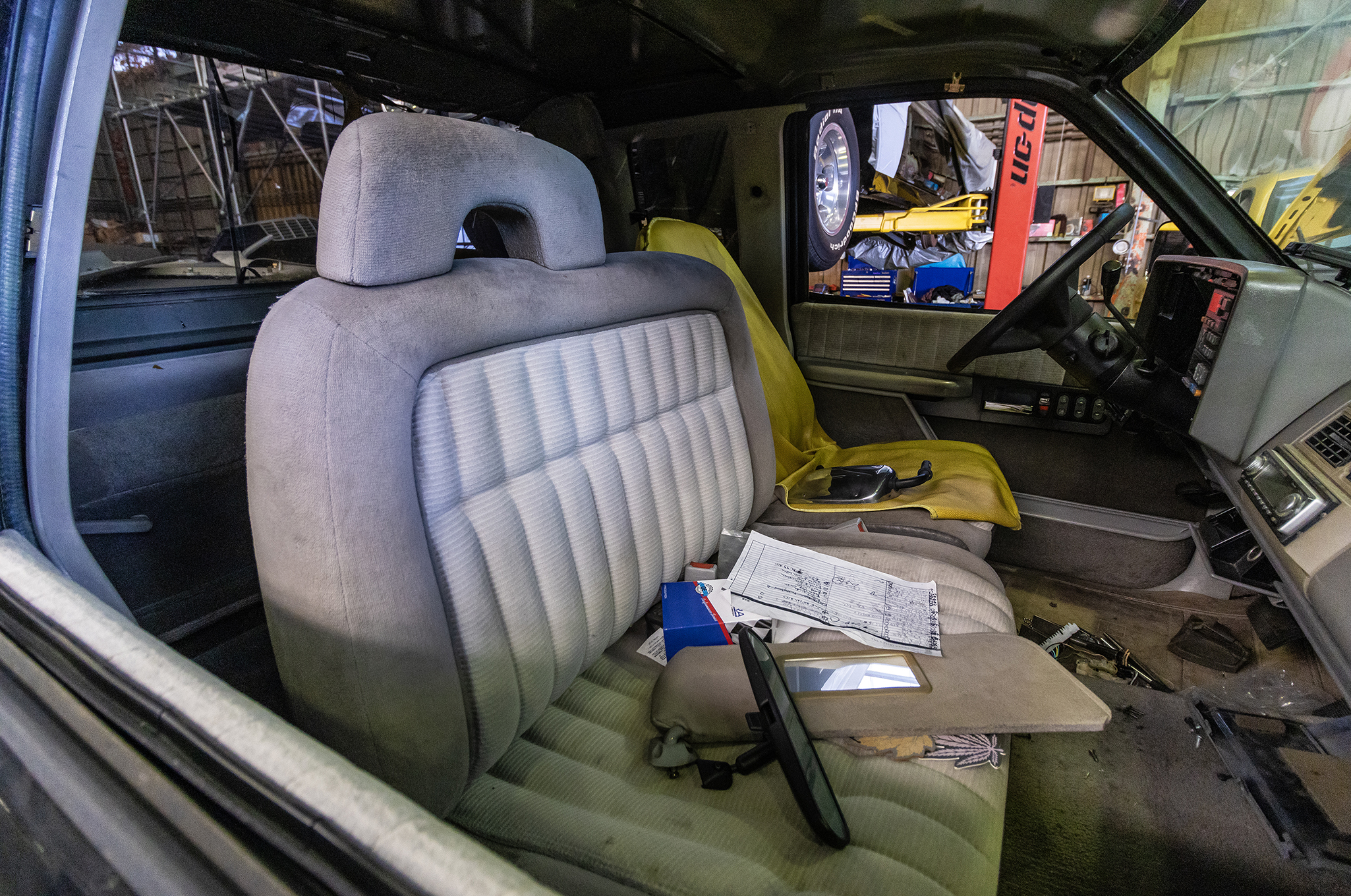 ウマに乗り各種パーツが取り外され、すでにがらんどう状態になっている。この車両、1994年型C1500。C1500といえば、90年代アメ車の代表格として日本でも人気を得たモデル。そんな今から31年前のモデルが今、再生の道をたどり始めている。