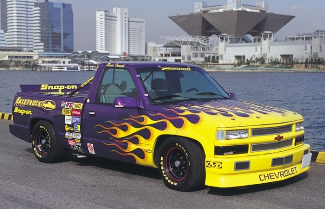 レーストラックと言えばC1500と共に歩んできたショップ。我々が今から27年前に一番最初に取材したのがナスカー風に仕上げた黄色いファイヤーパターンのC1500だった!