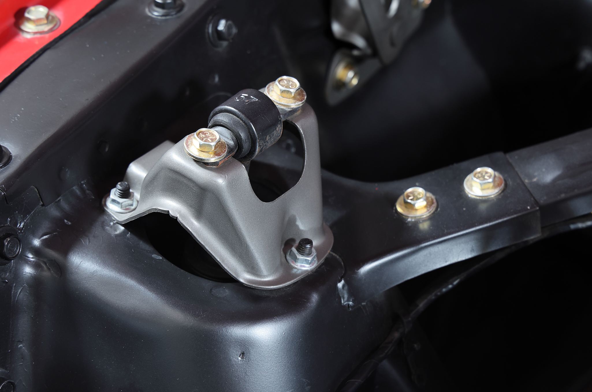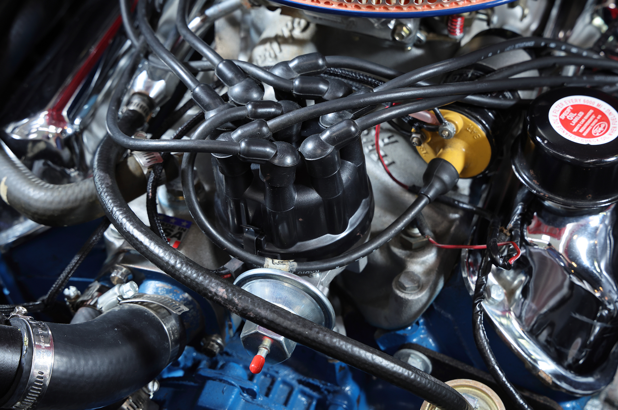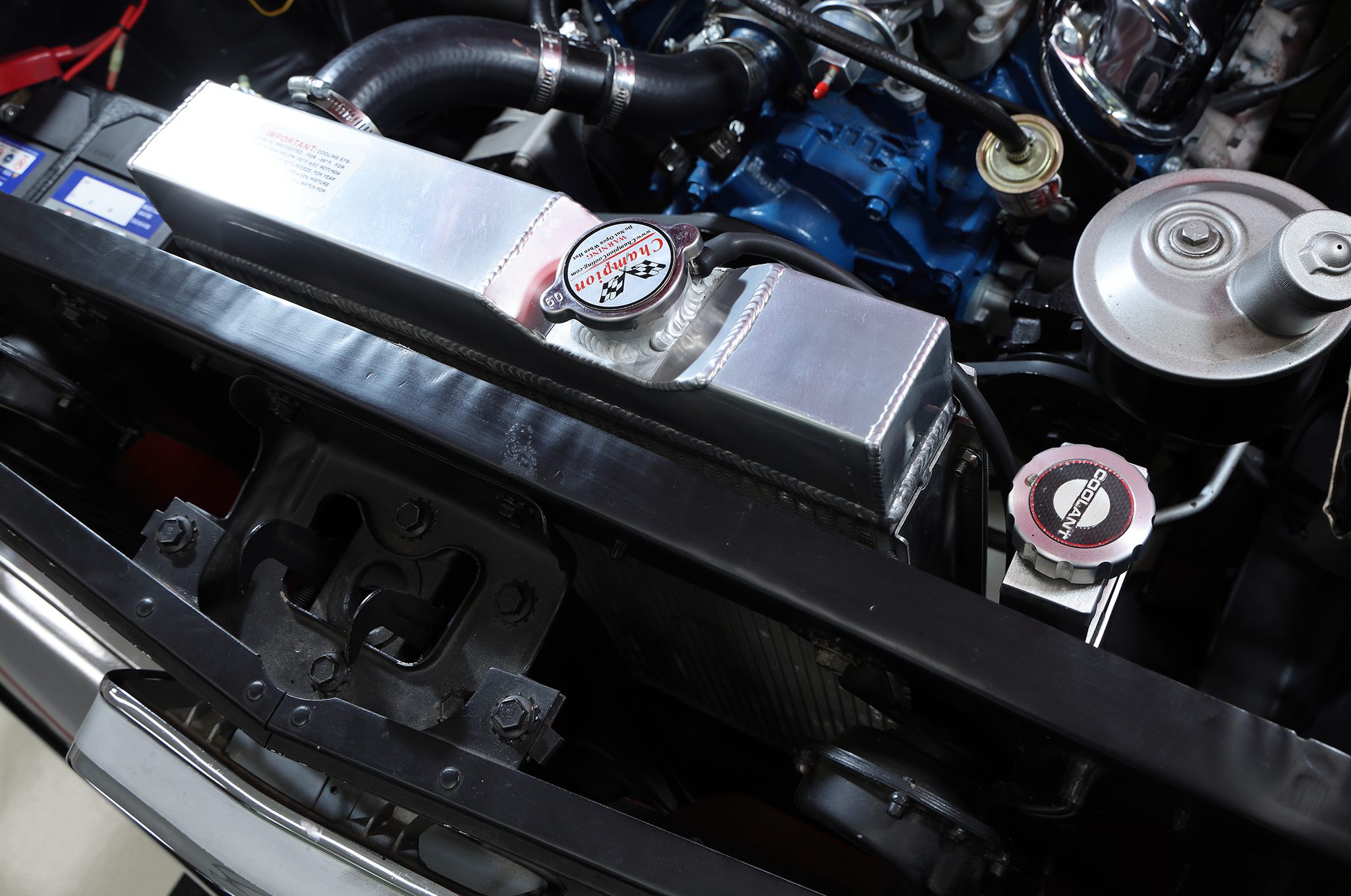 ▲搭載されるエンジンは289cuinのV8。換装品ではあるが、キャブレター、インテークマニホールド、ラジエーターを含む冷却系から点火系に至るまでモディファイされている。