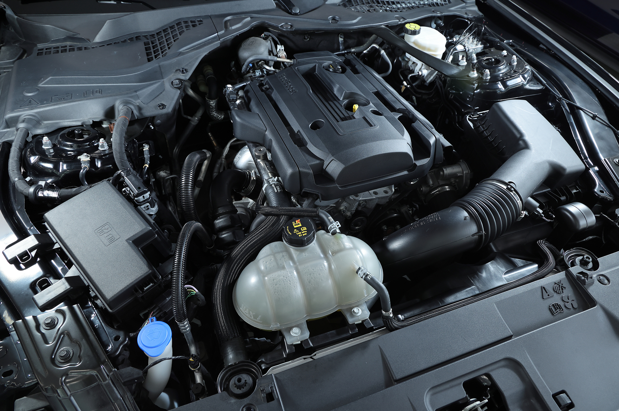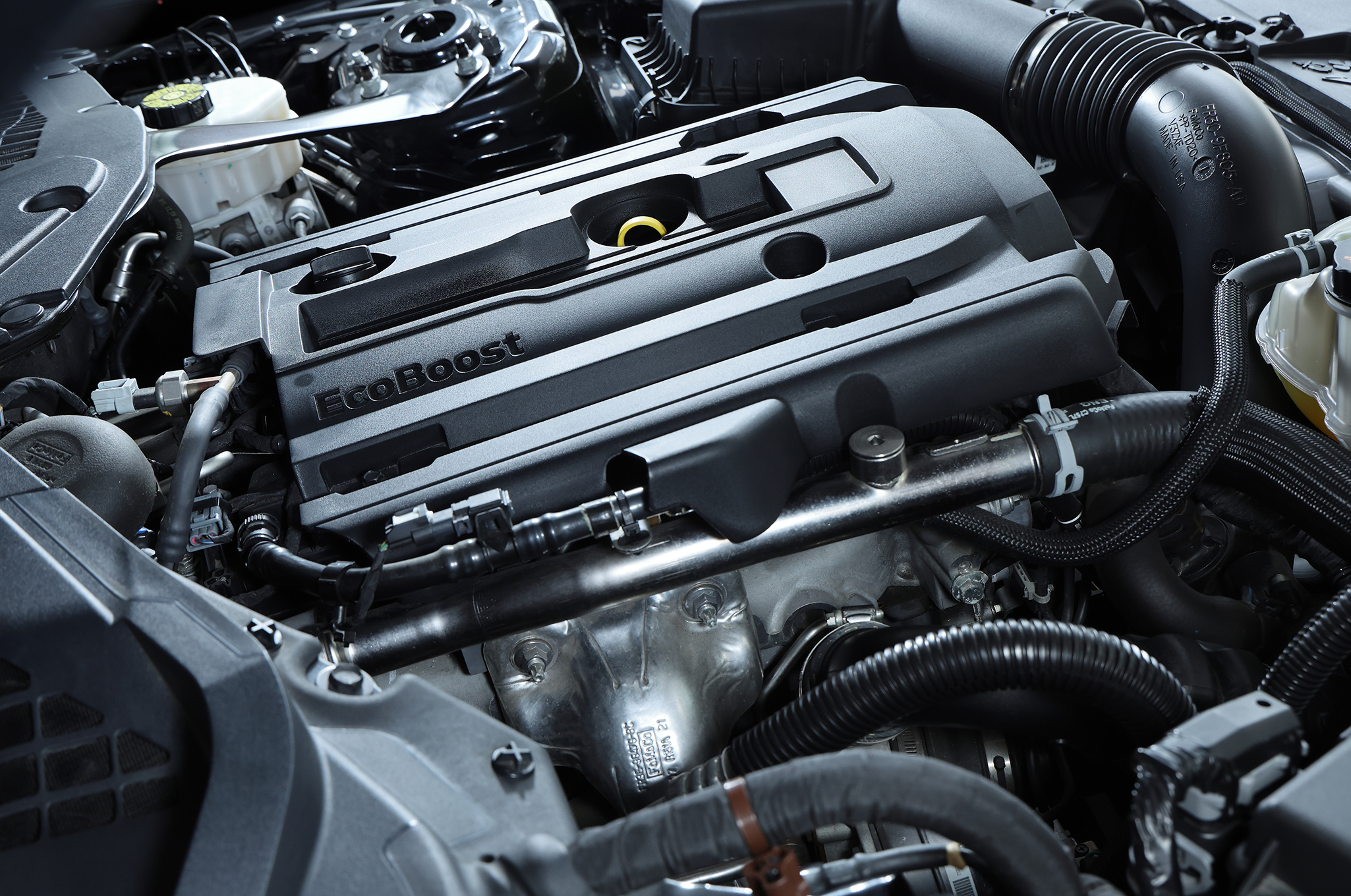 ▲搭載される2.3リッター直4エコブーストターボエンジンは、310hp、最大トルク350lb-ftを発生させる。