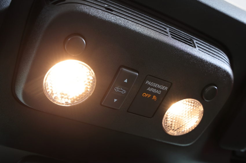 ▲頭上にあるホロ開閉のボタン。操作中は、ボタンを押したままの状態を維持する必要がある。