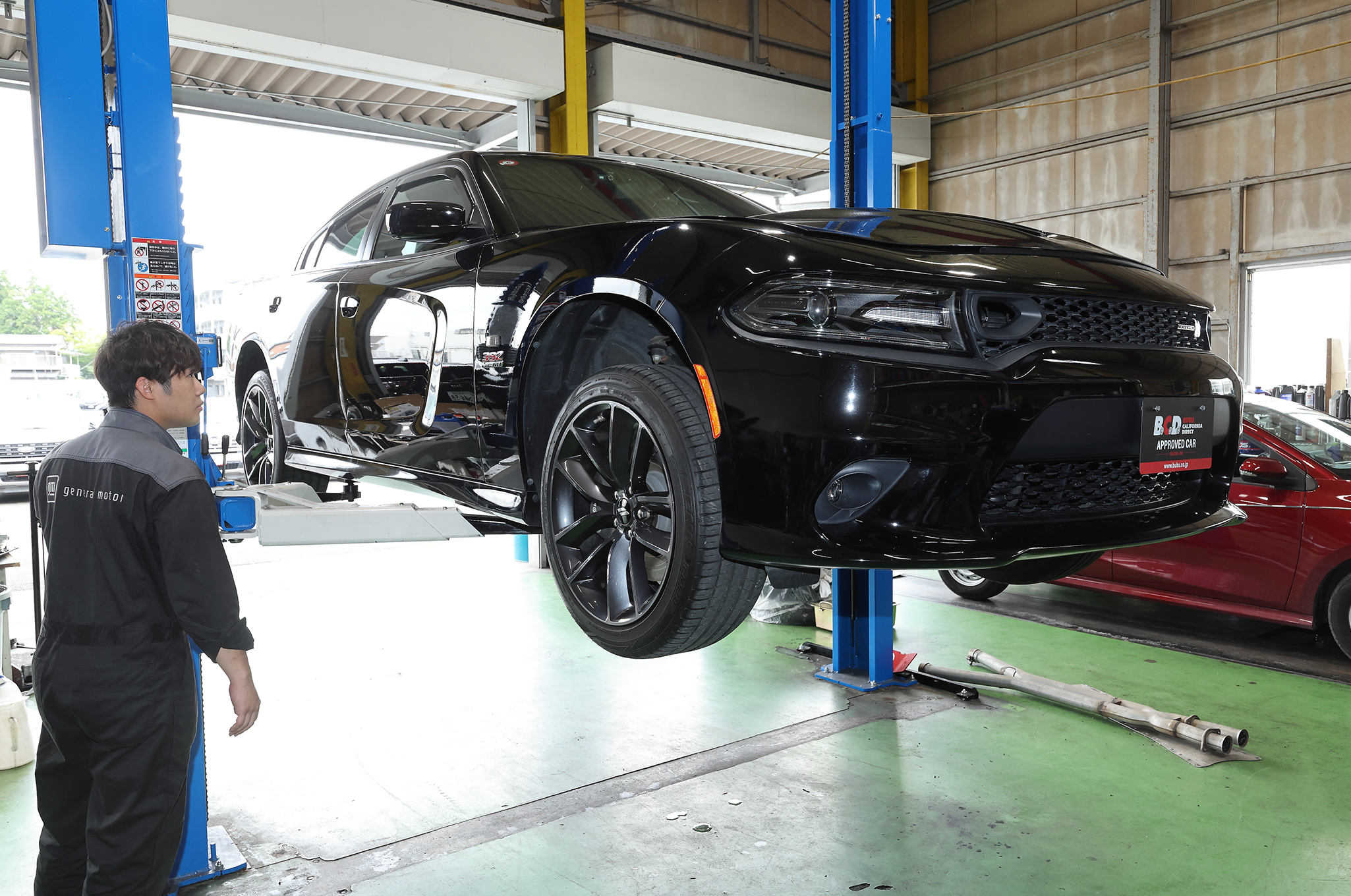 続けて、メカニックに各部のチェックを行ってもらった。この車両はBCDの自社輸入の認定中古車であるが、BCDといえば横浜店というイメージが強い。だが、実際にはBUBU各店舗でも扱われている。