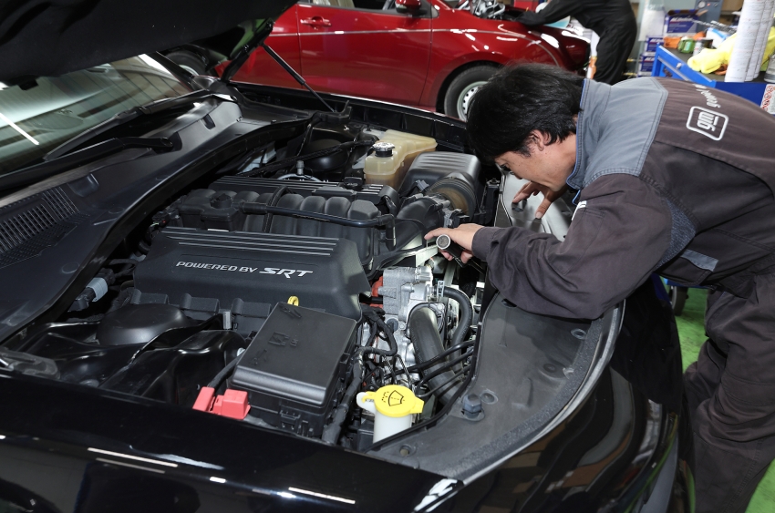▲使用しているエンジンオイルは、モパーの純正オイルの純正指定粘度。夏前にオイル交換をすることを推奨している。