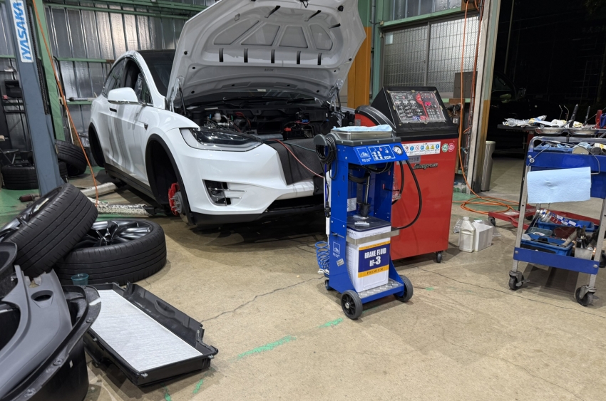 ▲クワッドドライブに研究対象とされていたモデルXの一台が販売され、納車前の整備が行われていた。