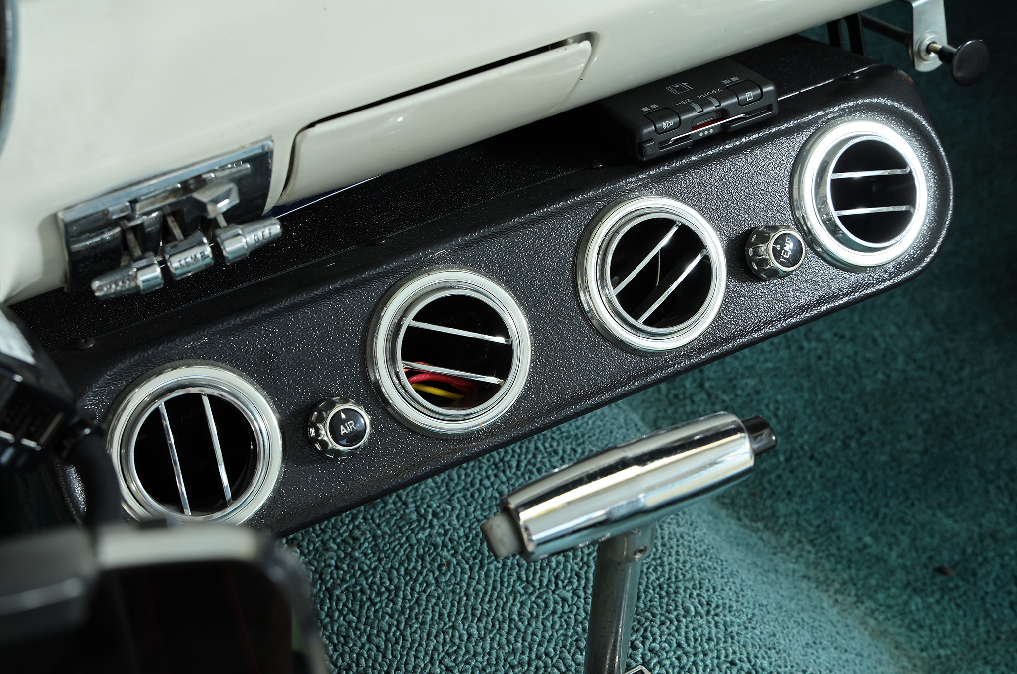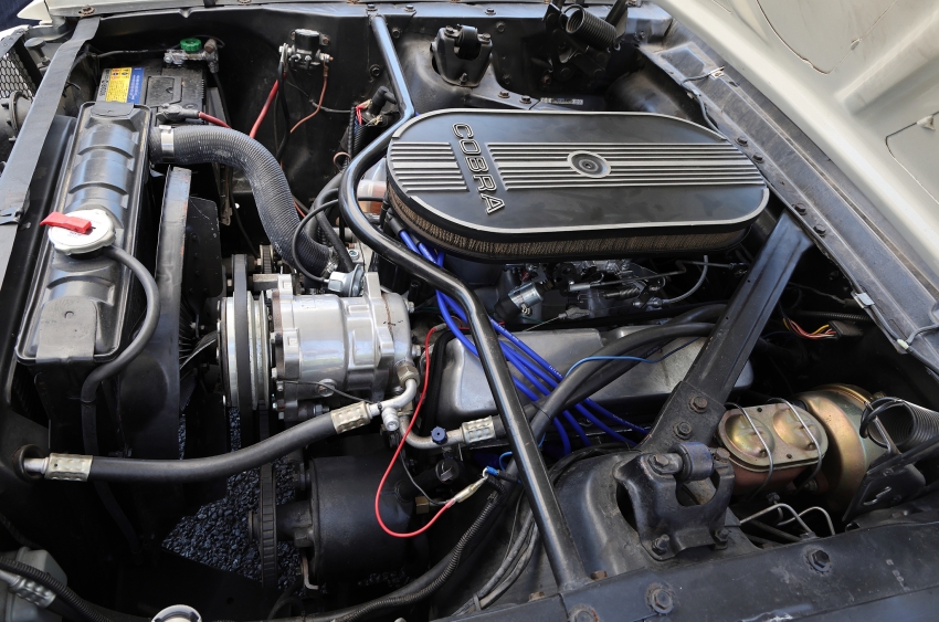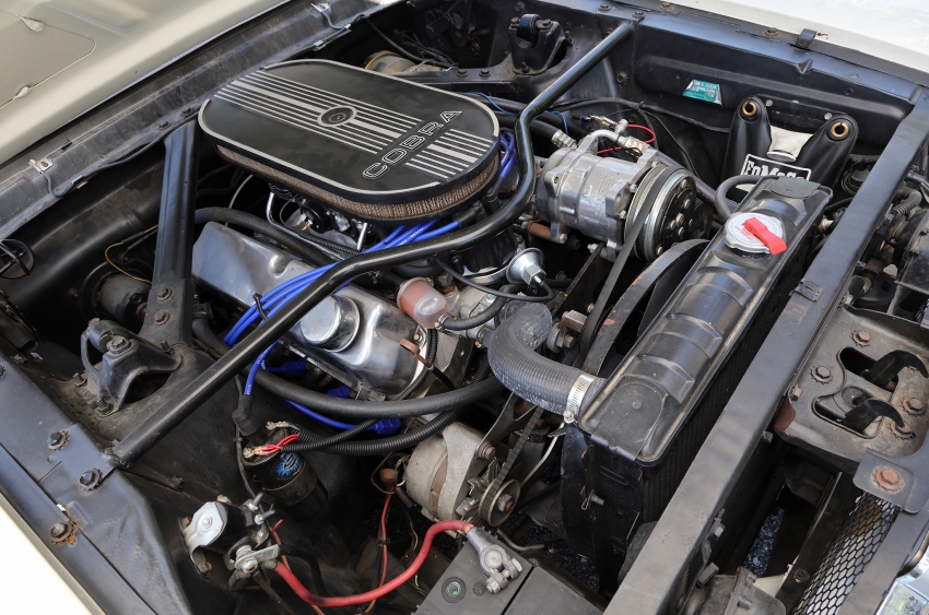 搭載されている289のV8エンジンは、当時200hp、最大トルク282lb-ftを発生させたスモールブロックの傑作と言われたフォード謹製V8エンジンであり、現車にはその当時の面影がエンジンルームにきっちりと残されている。