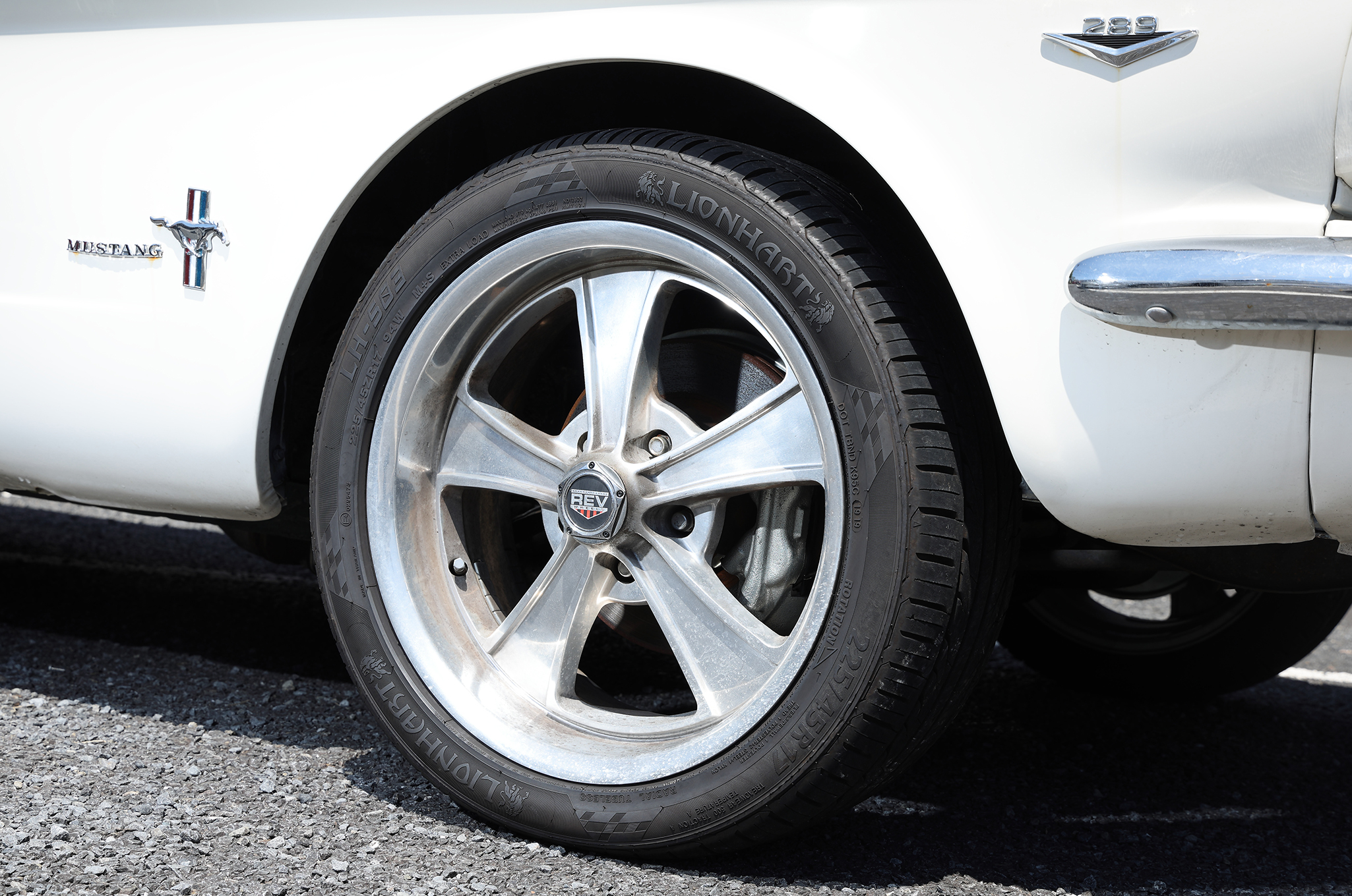 ▲1965年型マスタング2ドアハードトップ。若干のローダウンに17インチホイールがよく似合う。