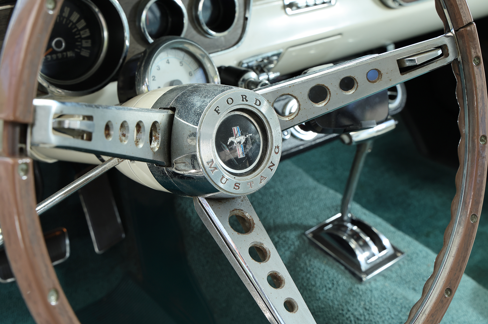 このマスタング、車内を見ればわかるが、実際に使用されている雰囲気で充満している。エアコンも作動するし、ハンドルを切っても嫌な振動や音が出ることもなく、安定したメカニズムを持つのだから十分に走れるのだろう。