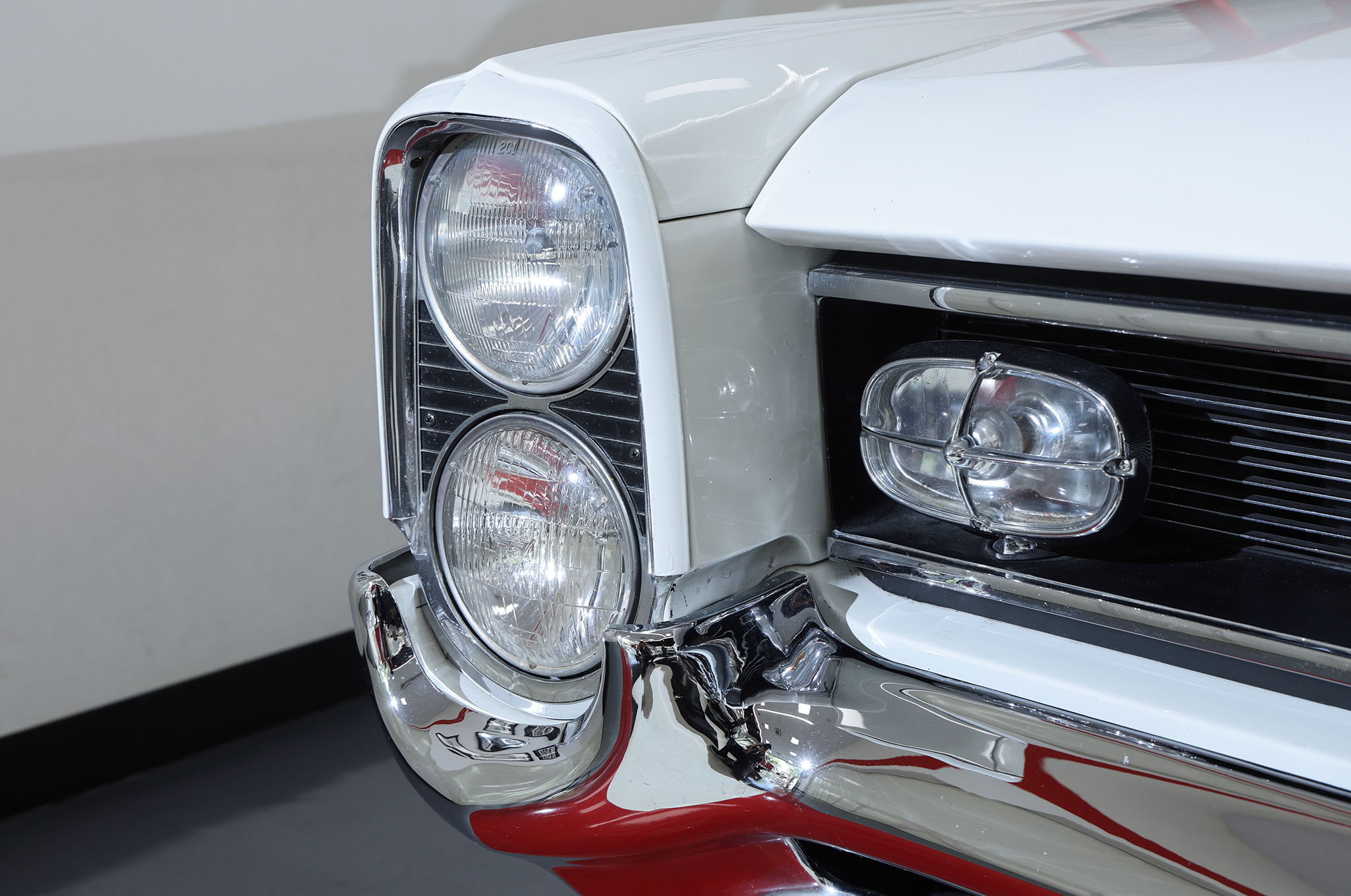 ▲丸目2灯のヘッドライトを持つ1964年型ポンティアックグランプリ。この個体はグッドガイズ賞を受賞する等、本国にて数々の賞を受賞している。