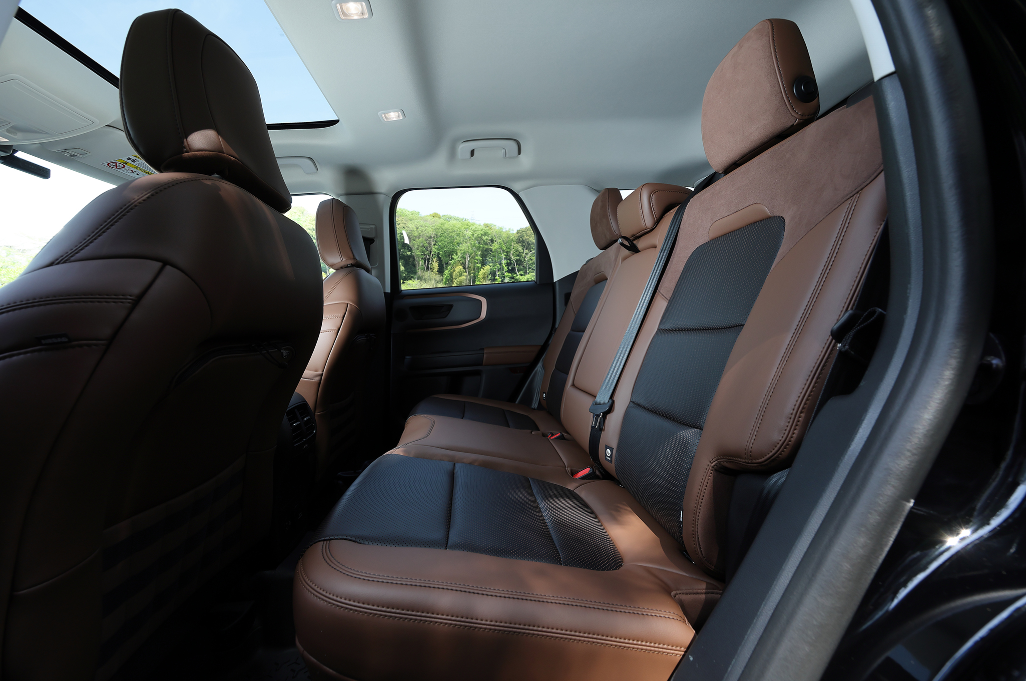 ▲セカンドシートも同様な素材感のシートを用いている。4ドア5名乗車を満たす居住空間もブロンコスポーツの魅力である。