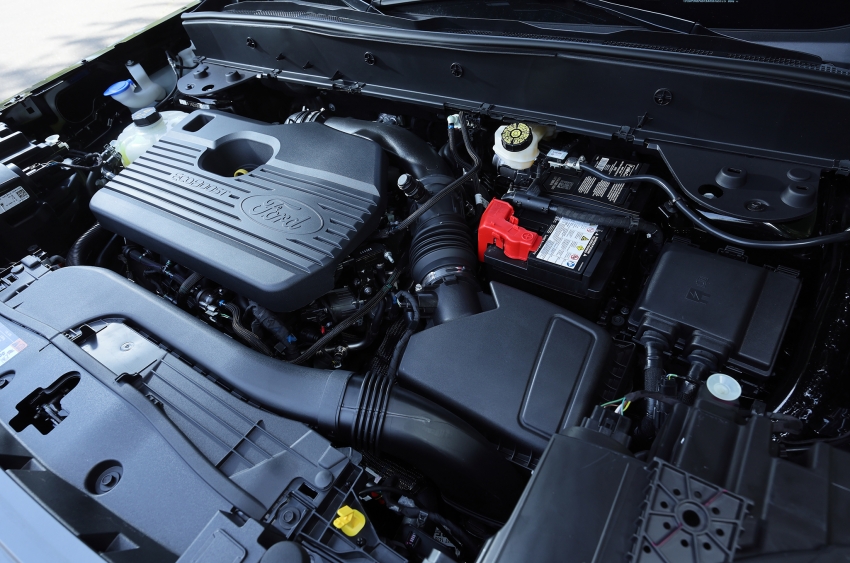 ▲搭載されるエンジンは2リッター直4エコブーストターボエンジン。245hp、最大トルク275lb-ftを発生させ、8速ATと組み合わされる。他に1.5Lモデルも存在する。