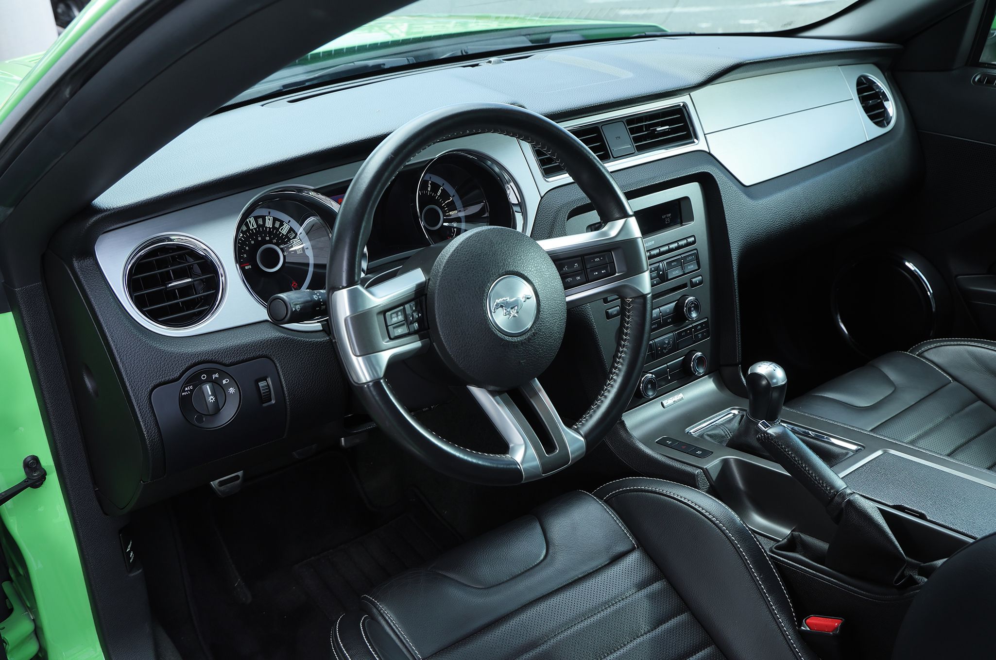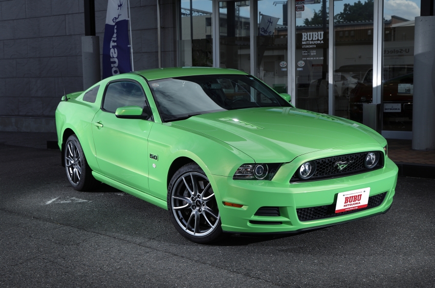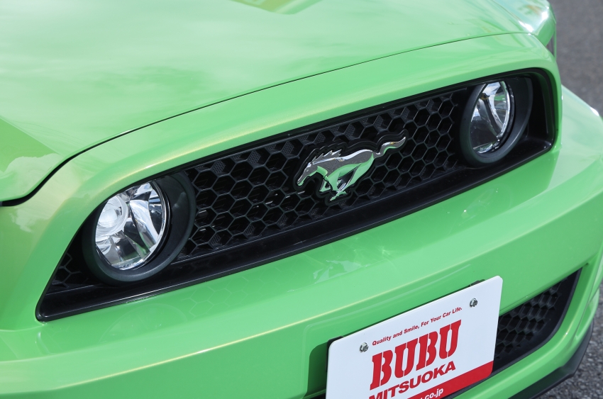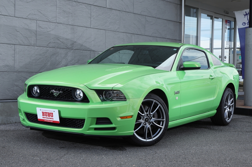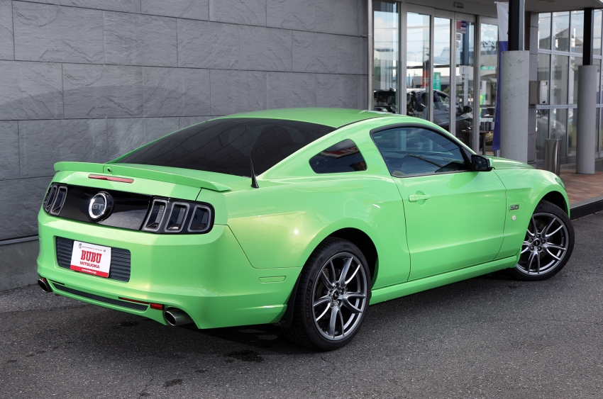 ▲2013年に限定モデルとして発売されたマスタングV8GTパフォーマンスパッケージ。その中古車。特徴は、何と言ってもボディカラーに尽きるだろう。発色の良いグリーンカラーは抜群にカッコ良く、街中ではスーパーカーさながらの目立ち具合。