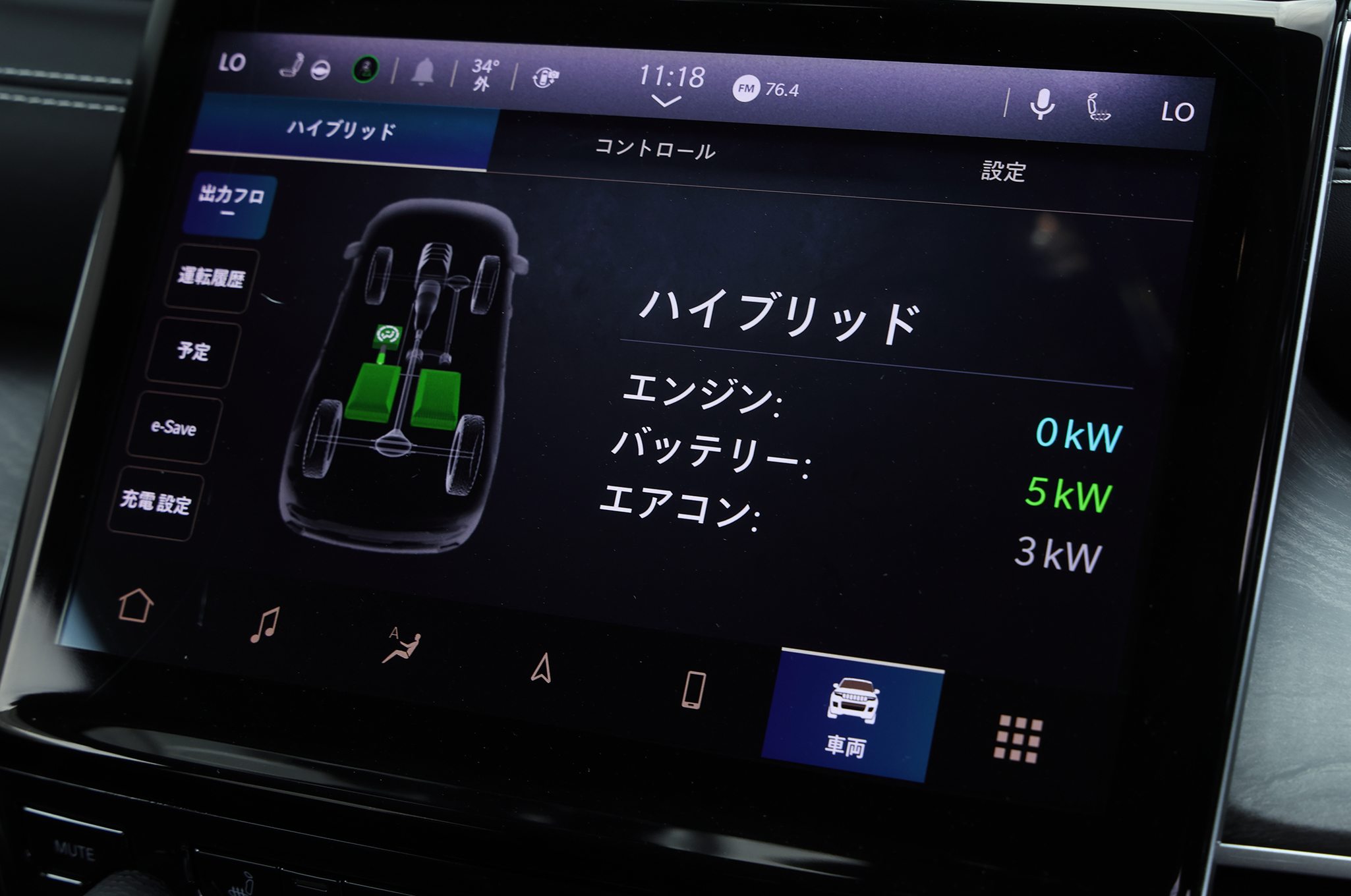 e-SAVEには、現状の電池残量を維持する「バッテリー節約」モードと積極的に残量を復活させる「バッテリー充電」モードがあり、後者では「40%」「60%」「80%」と、充電レベルが任意で設定できるから、充電残量を考えつつ走らせることで外部電源に頼らない走行も可能になる。