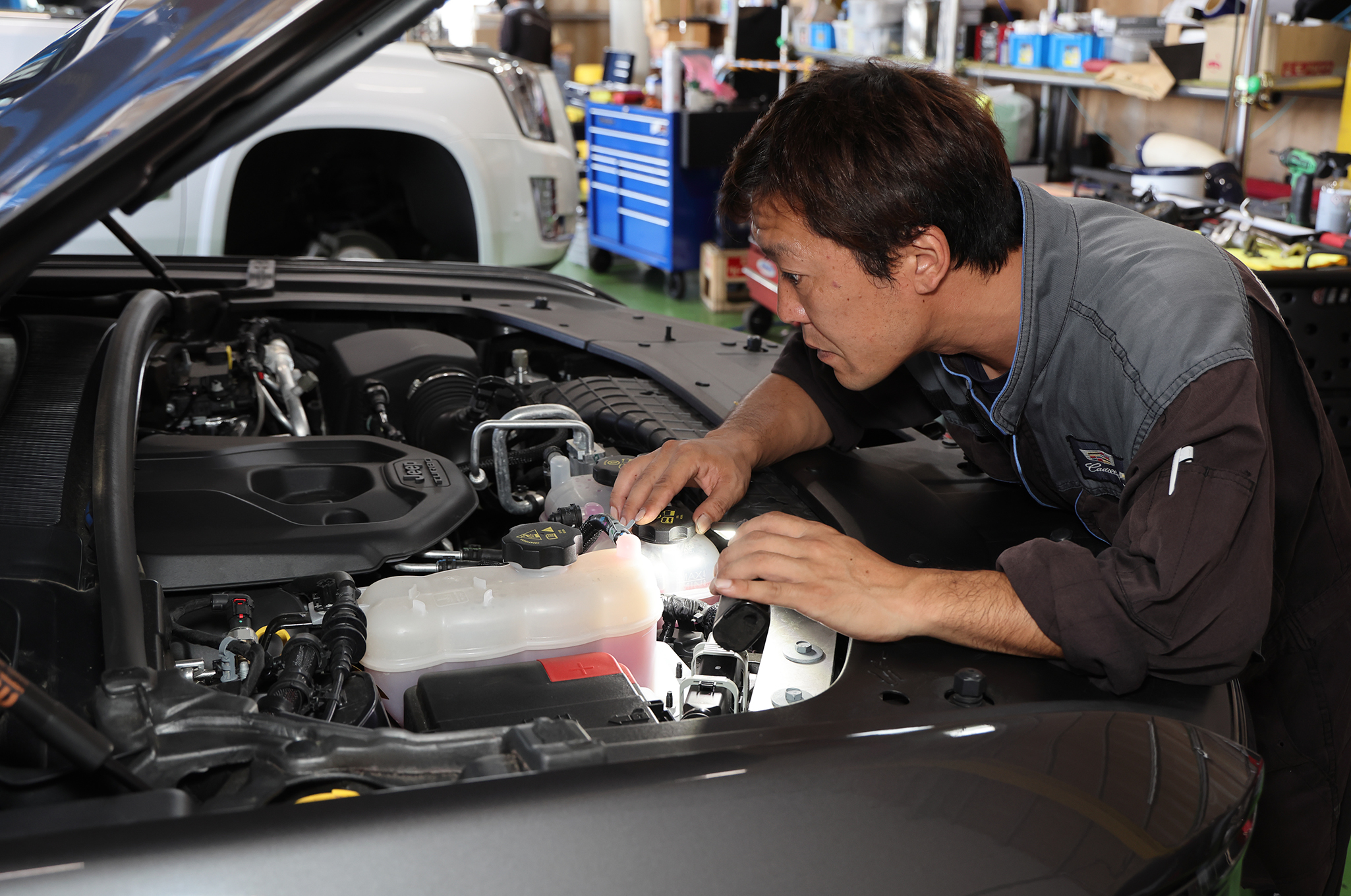 ▲関連企業にジープディーラーを連ねるBUBU宇都宮は整備に関する情報や機器を持っており、安心したジープライフを提供してくれる。