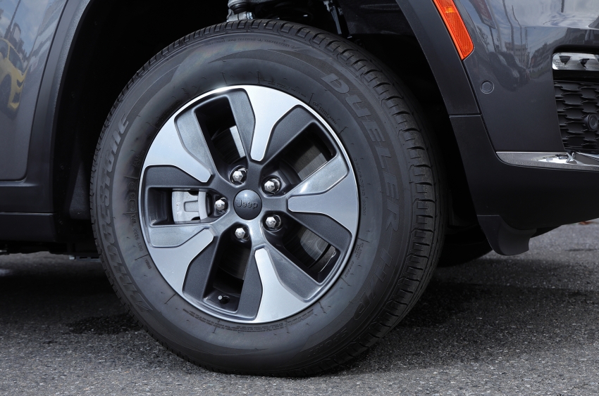 ▲PHEVとはいえ、ジープならではの走破性は健在。純正ホイールのコンディションも上々。
