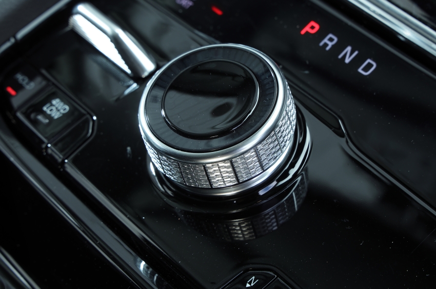 ▲ダイヤル式ロータリーシフトが配置され8速ATシフト。操作性向上がもたらされている。