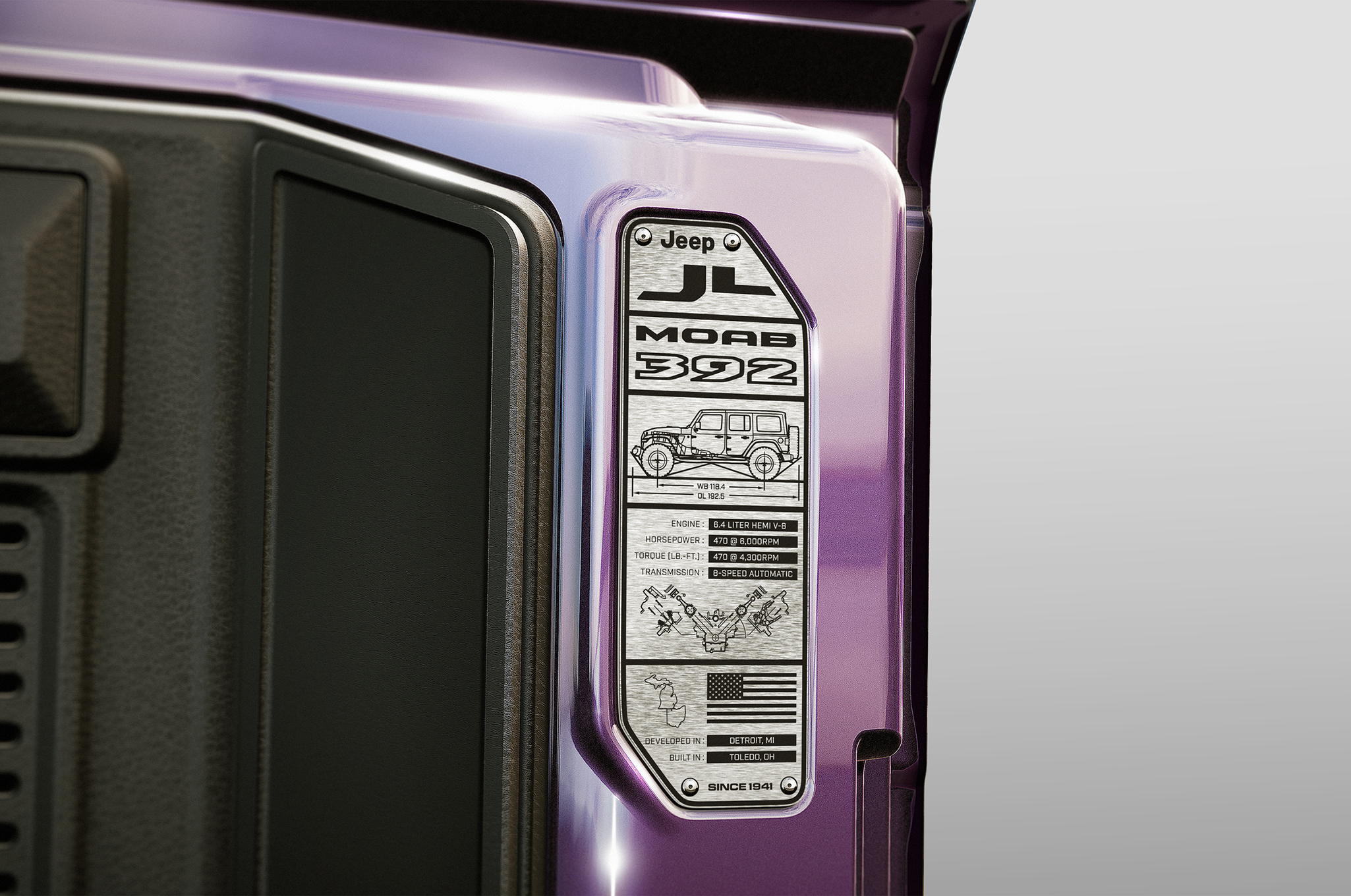 ▲6.4リッターV8エンジンを搭載したラングラーモアブ 392。限定モデルで登場。