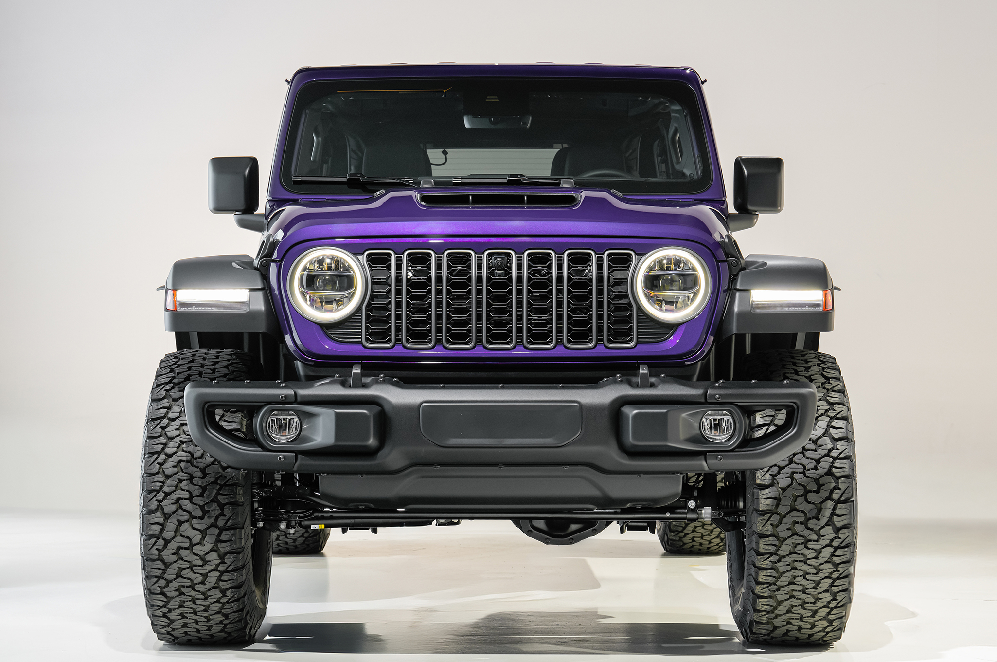 ▲ラングラー+V8を象徴するプラムクレイジーのボディカラー。