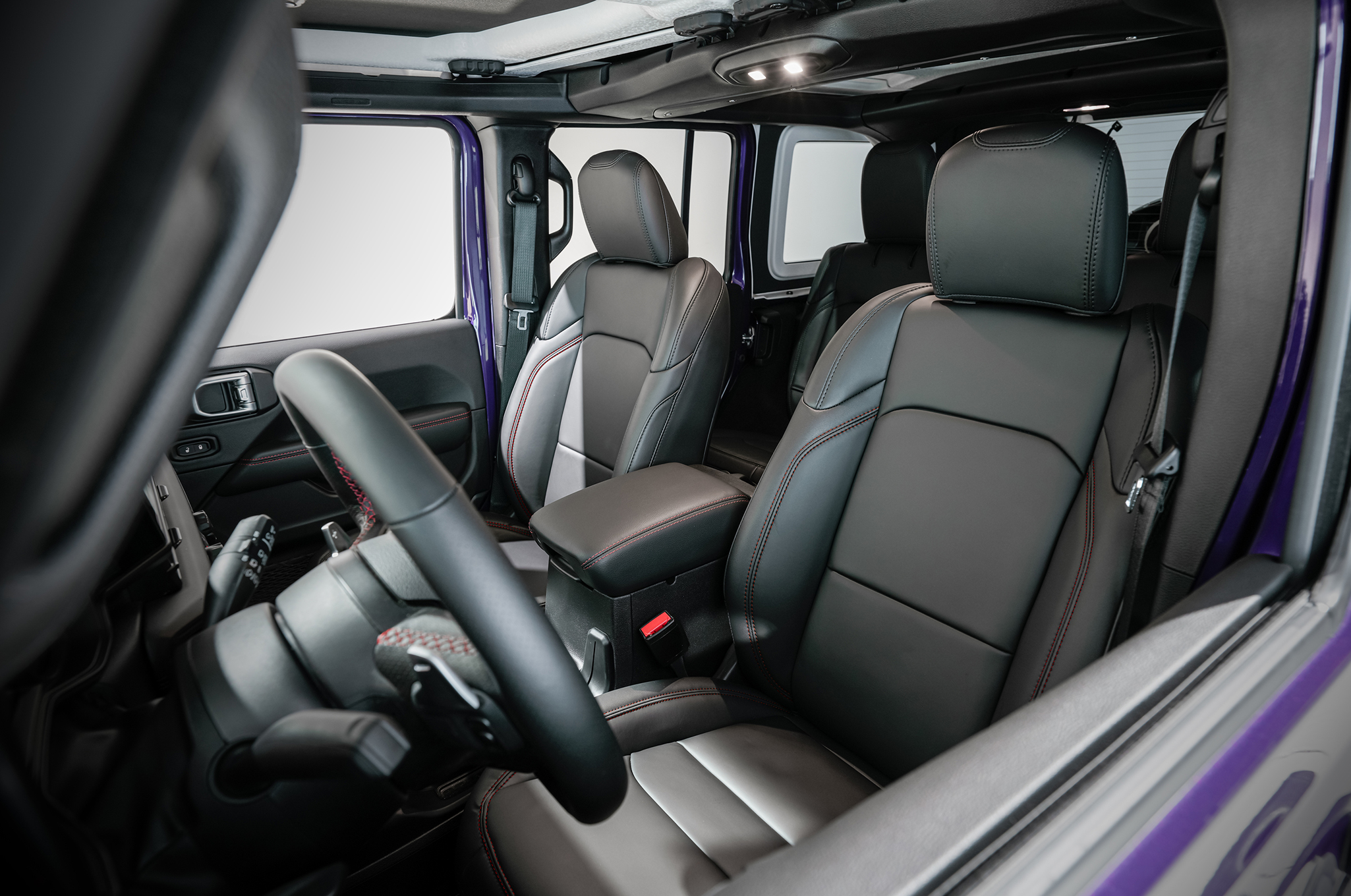 搭載されるエンジンは6.4リッターV8HEMIで、470hp、470lb-ftを発生させ、17インチビードロック対応ホイール、35インチオールテレーンタイヤ、4.56のアクスルレシオ、2.72:1のSelec-TracフルタイムTケース、2モードデュアルエキゾースト、ウォーターセパレーター付きコールドエアインテークフードなどにより、パワー&パフォーマンスを備えたラングラーとなる。