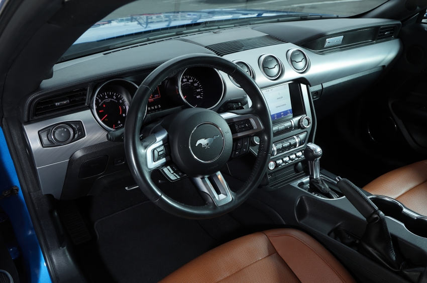 ということで、鮮やかなブルーボディが際立つマスタングエコブースト。搭載されるエンジンは2.3リッター直4ターボで、310hp、最大トルク350lb-ftを発生させる。