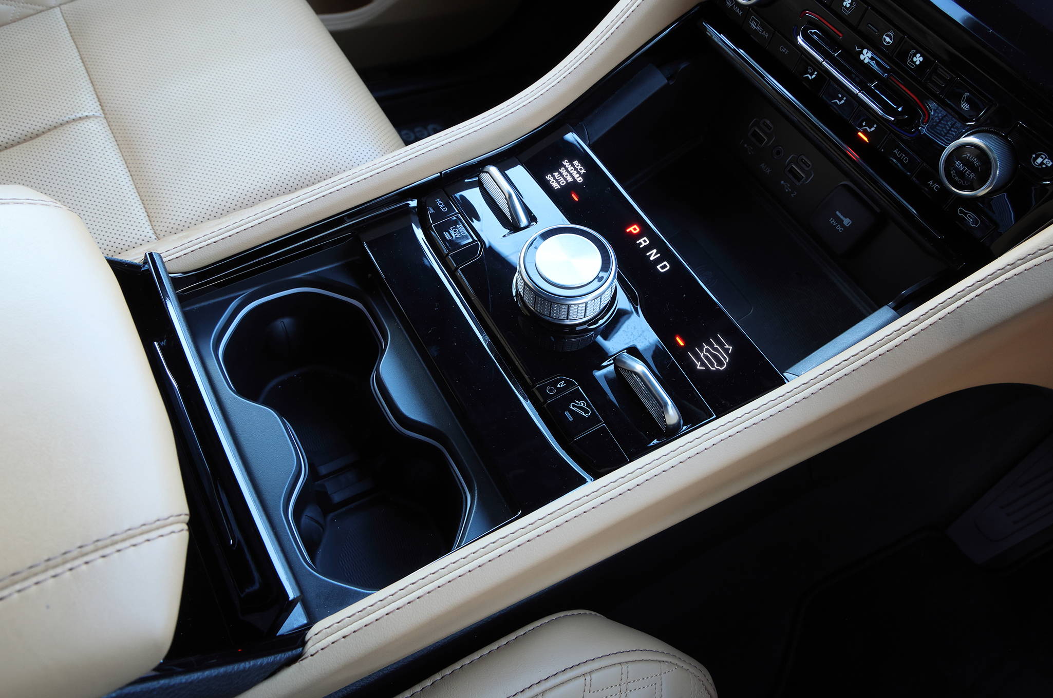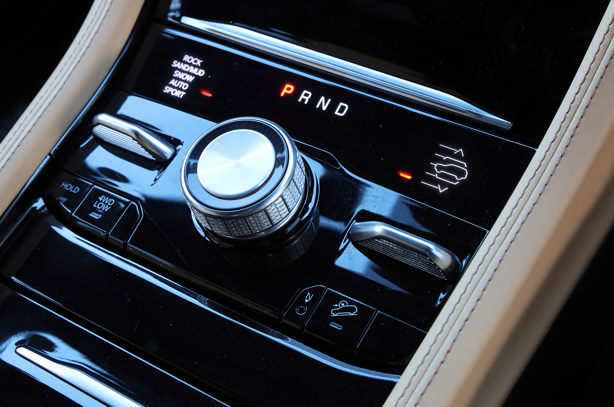▲ダイヤル式ロータリーシフトが配置され8速ATシフト。操作性向上がもたらされている。