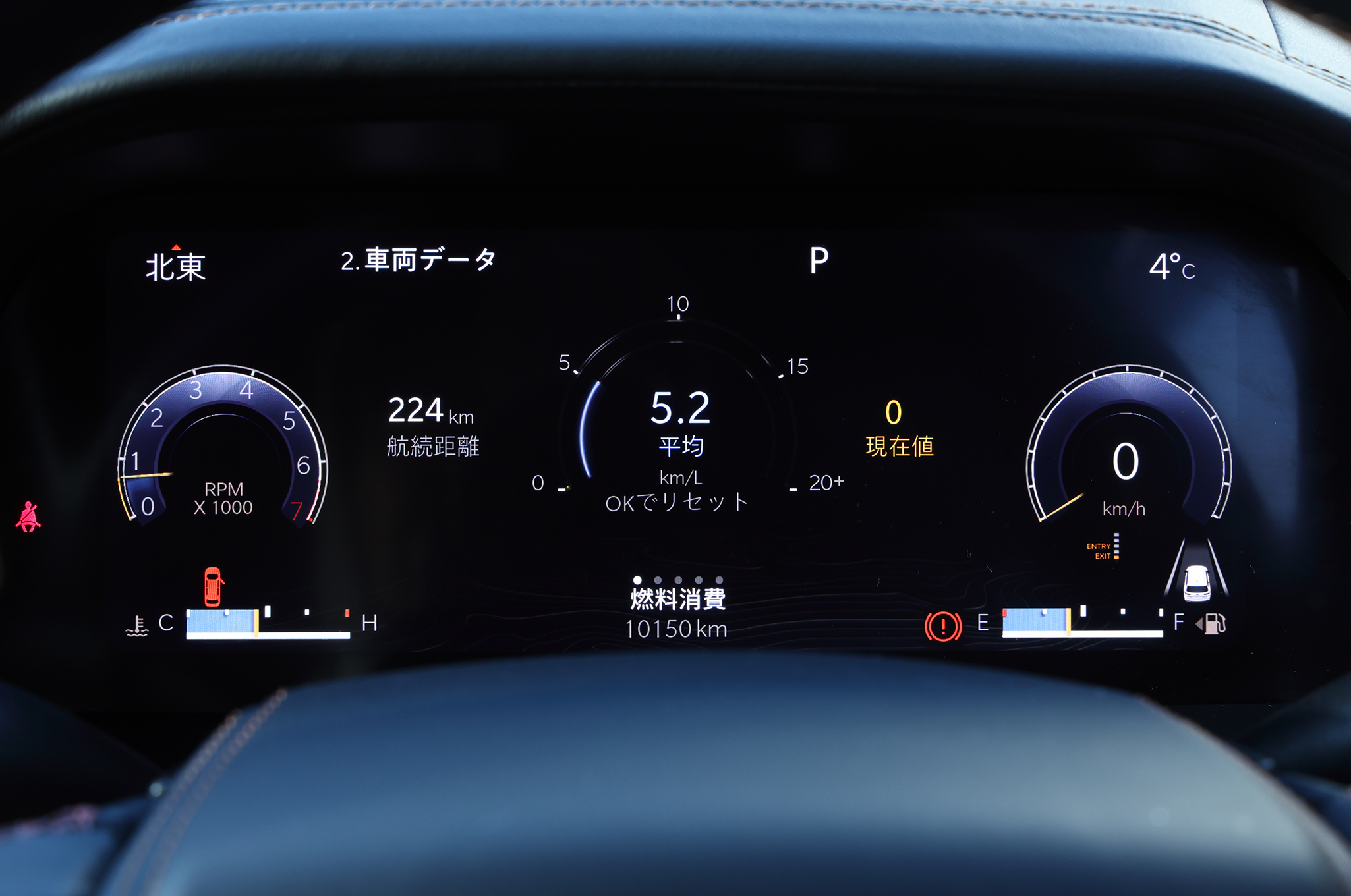▲情報量の多いメーター。現代的な高級車に相応しい洗練を見せる。