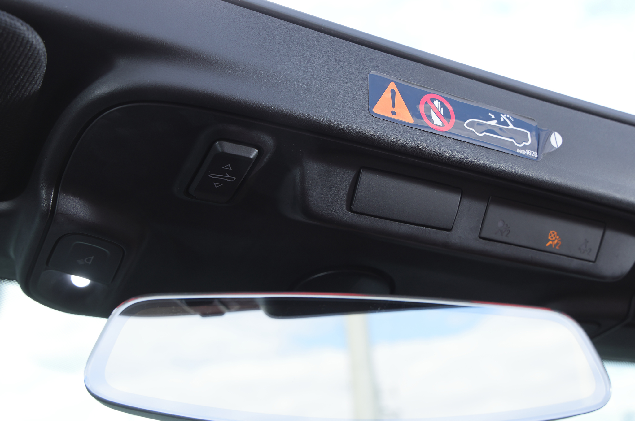 ▲この頭上のボタンを約13秒押し続けるだけで幌が開閉する。このワンアクションのみ。