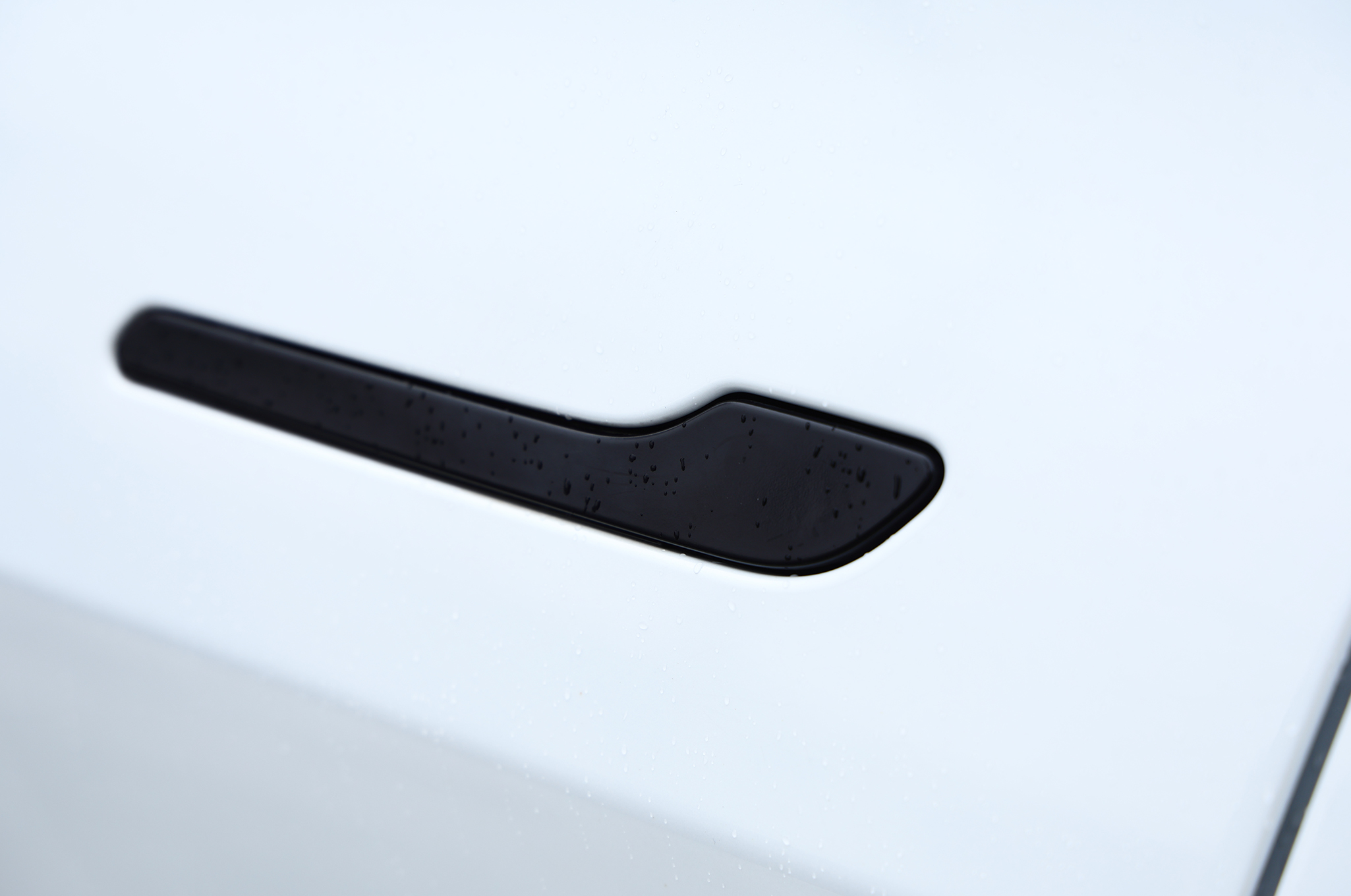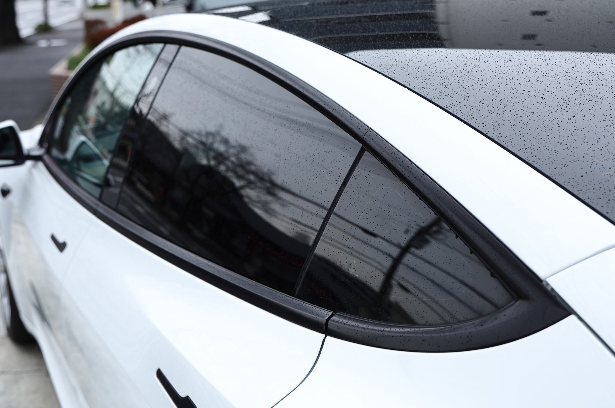 この年代のモデル3は、近未来的なデザインが特徴的で、グリルレスのフロントマスクがポイント。また窓枠やドアハンドル等からクロームパーツを廃止したクローム消しを行っており、引き締まった印象が非常に強い。
