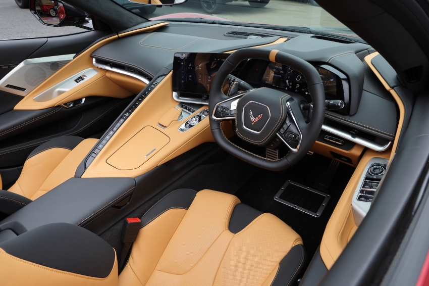 すなわち、ワインレッドとタンの内装といった優雅溢れる仕様と思いきや、一転、走らせればC8ならではのレベルの高いスーパーカー的走りが可能である。