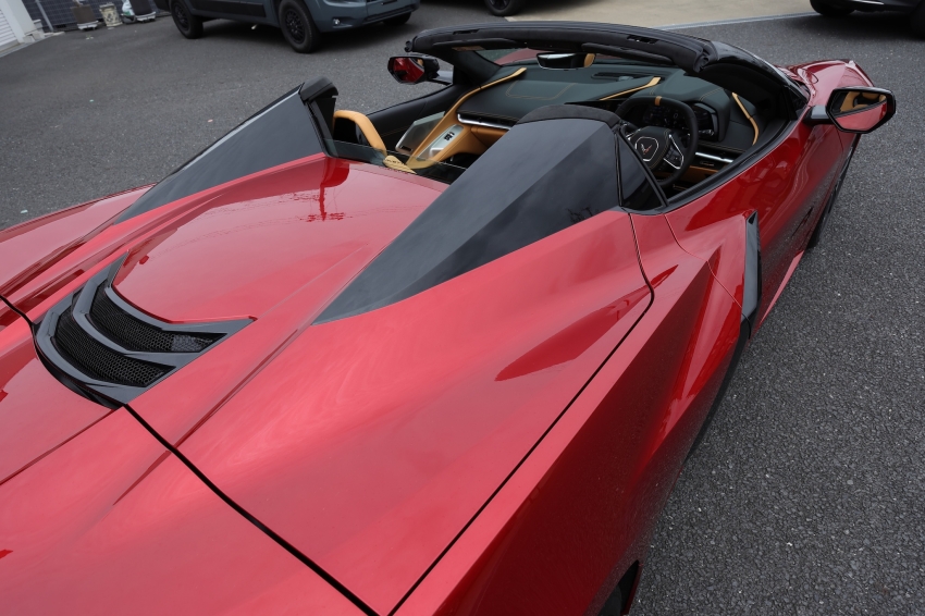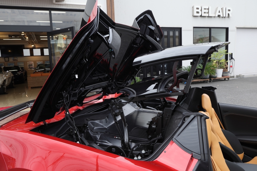 C8コルベットの購入を検討している方にとって常に悩ましい問題が「クーペ」か「コンバーチブル」かという選択。というのは、コルベットの場合、クーペであっても屋根が開く。だから「コンバーチブルにすれば剛性が落ちるから」というような自動車評論家的文言はほとんど役に立たない。