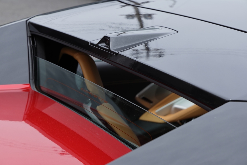 ▲ルーフを閉じていても小窓のみ開閉可能であり、大排気量V8NAエンジンのダイレクトサウンドを聞くことが可能。