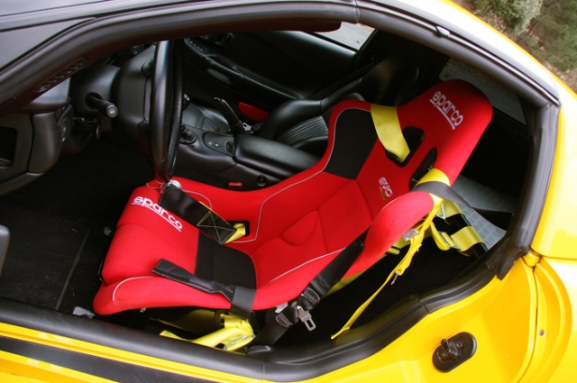 室内空間はC4に比べて格段に広く快適になった。ただし、ノーマルのC5のレザーシートは、座り心地は良好だが表面がツルツルと滑り易く、サポート性もイマイチなので、取材車両はスポーツ走行用にスパルコのバケットシートを装着している。